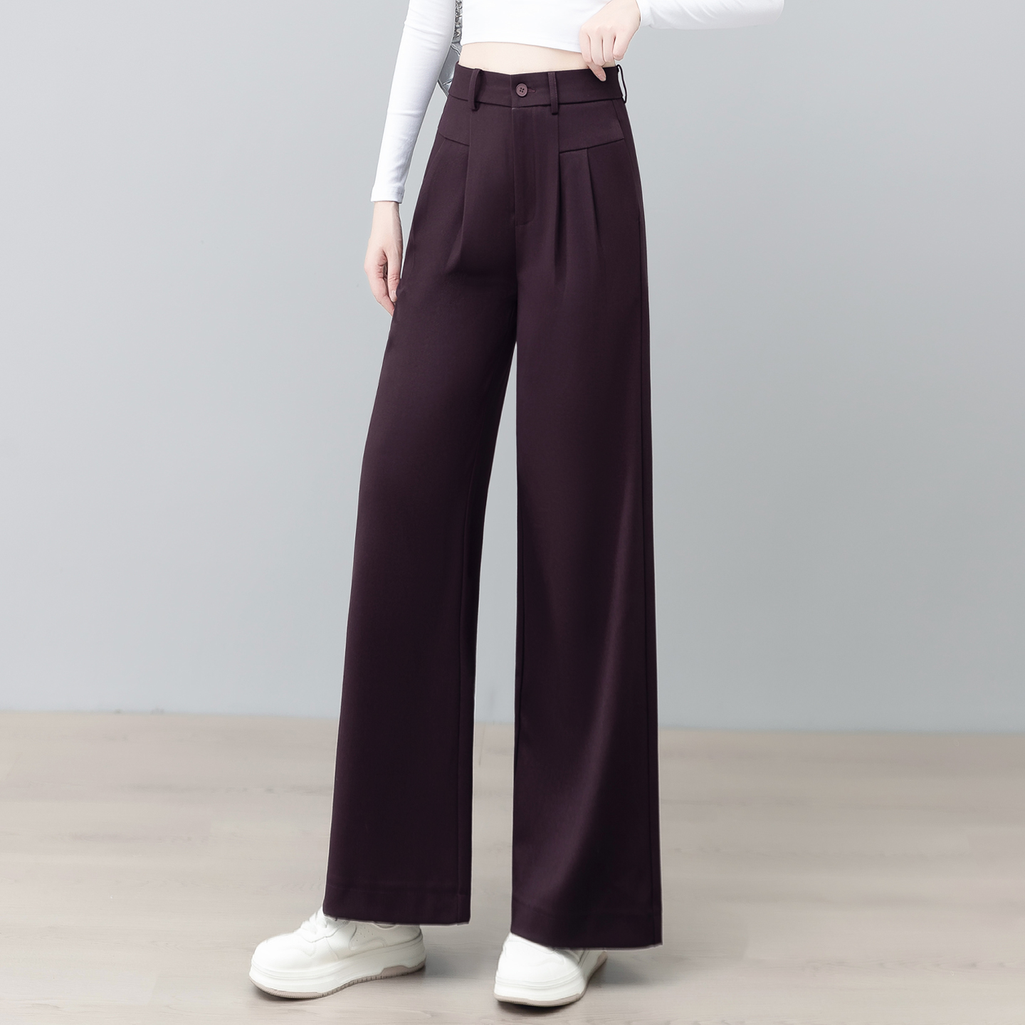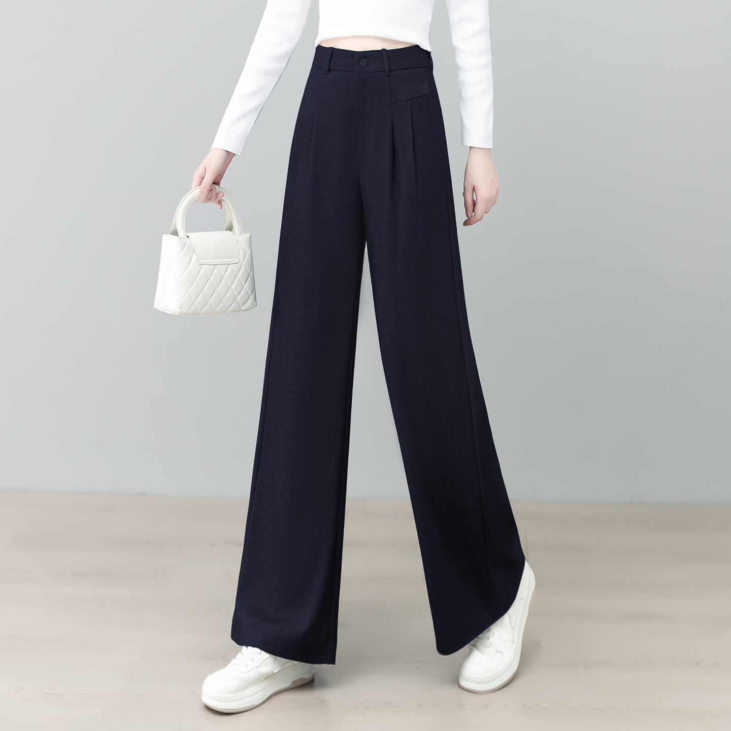 子 高腰显瘦气质垂感宽松直筒裤 天丝棉羊毛休闲阔腿女秋季 2025新款