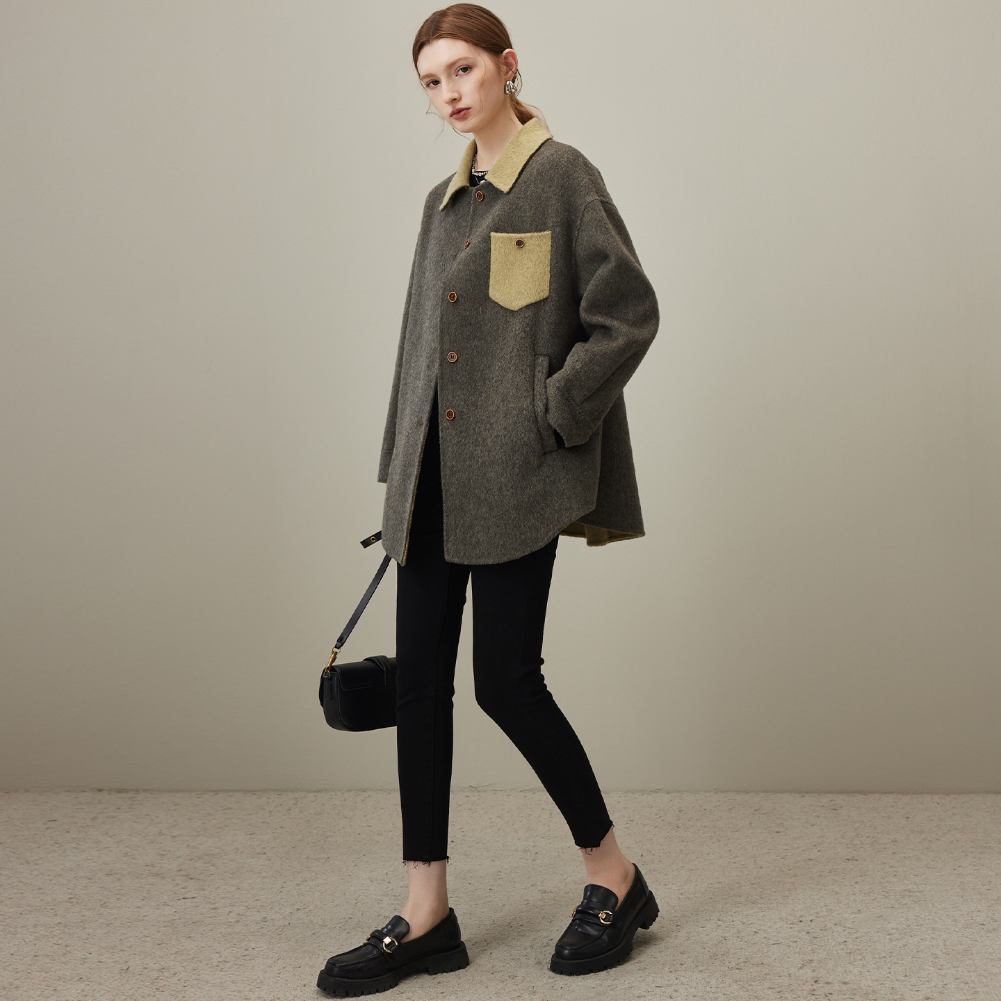 圆领大衣女小个子气质毛呢外套 高端羊毛双面呢短款 2025年春季 新款