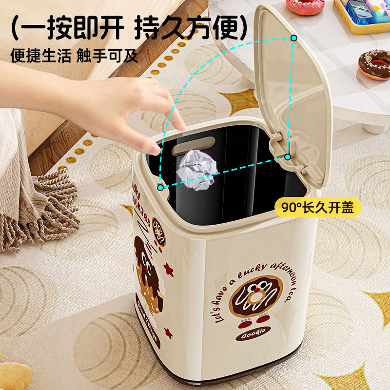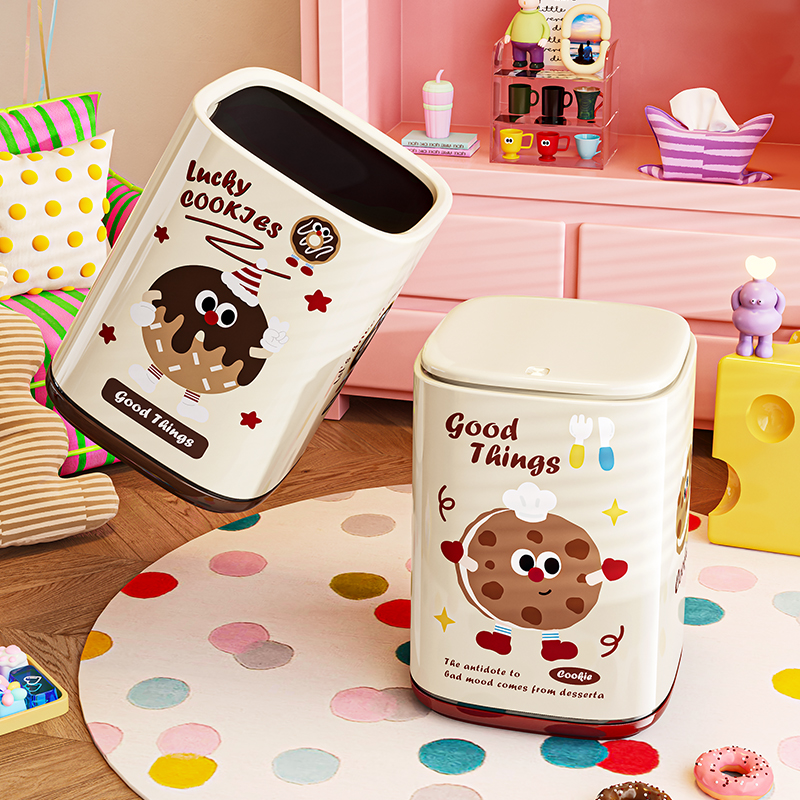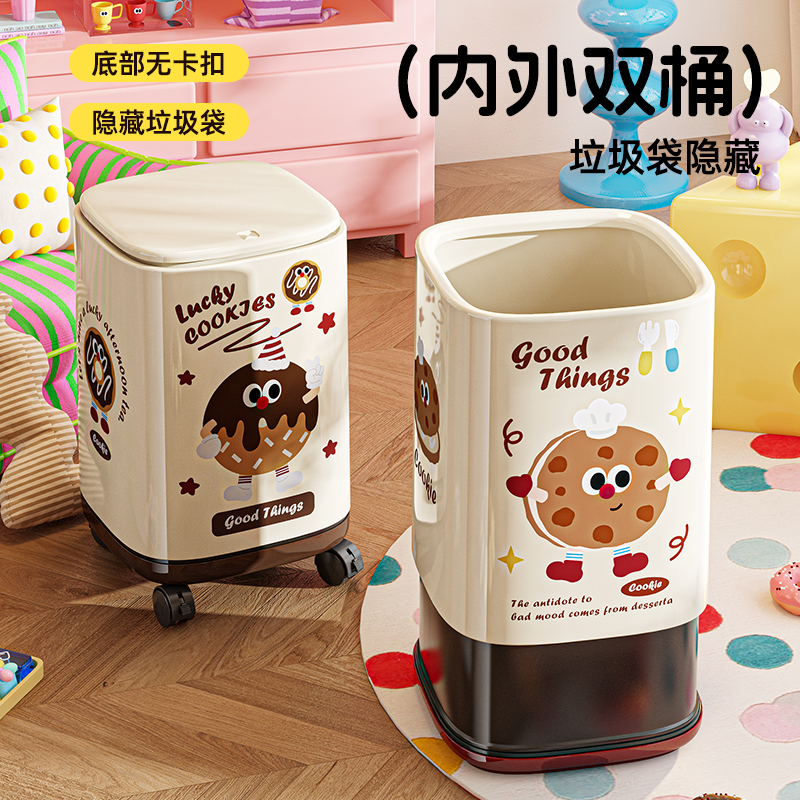 卡通垃圾桶家用内外双筒大号大容量带盖客厅卧室带轮创意图案纸篓