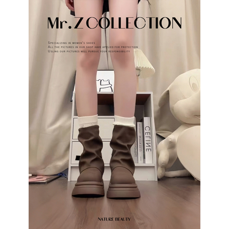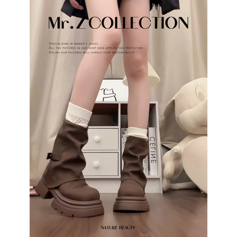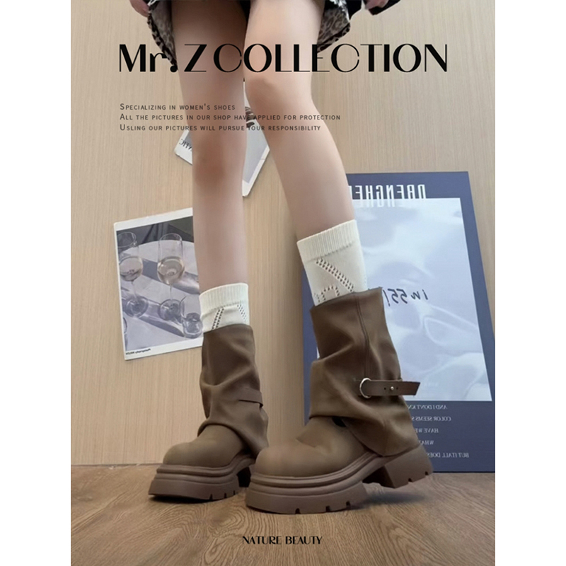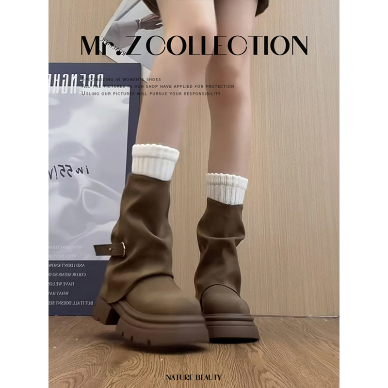 管靴美拉德短靴子鞋 厚底马丁靴女款 增高裤 春秋季 子黑色 2025新款