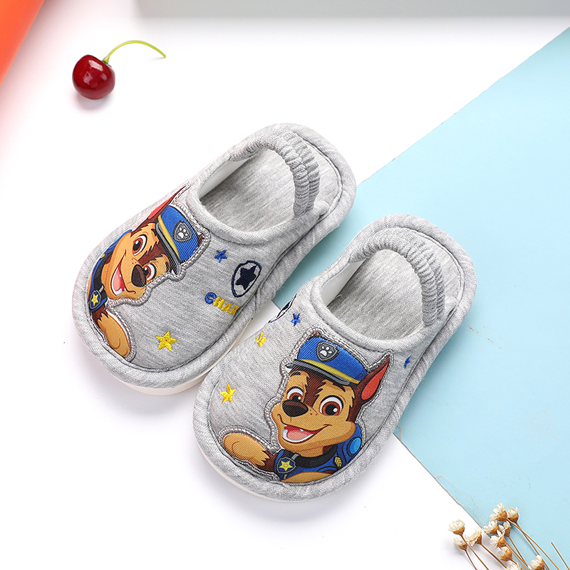带后跟 3岁室内防滑婴幼儿童棉拖鞋 汪汪队宝宝拖鞋 亚麻男童1秋冬季