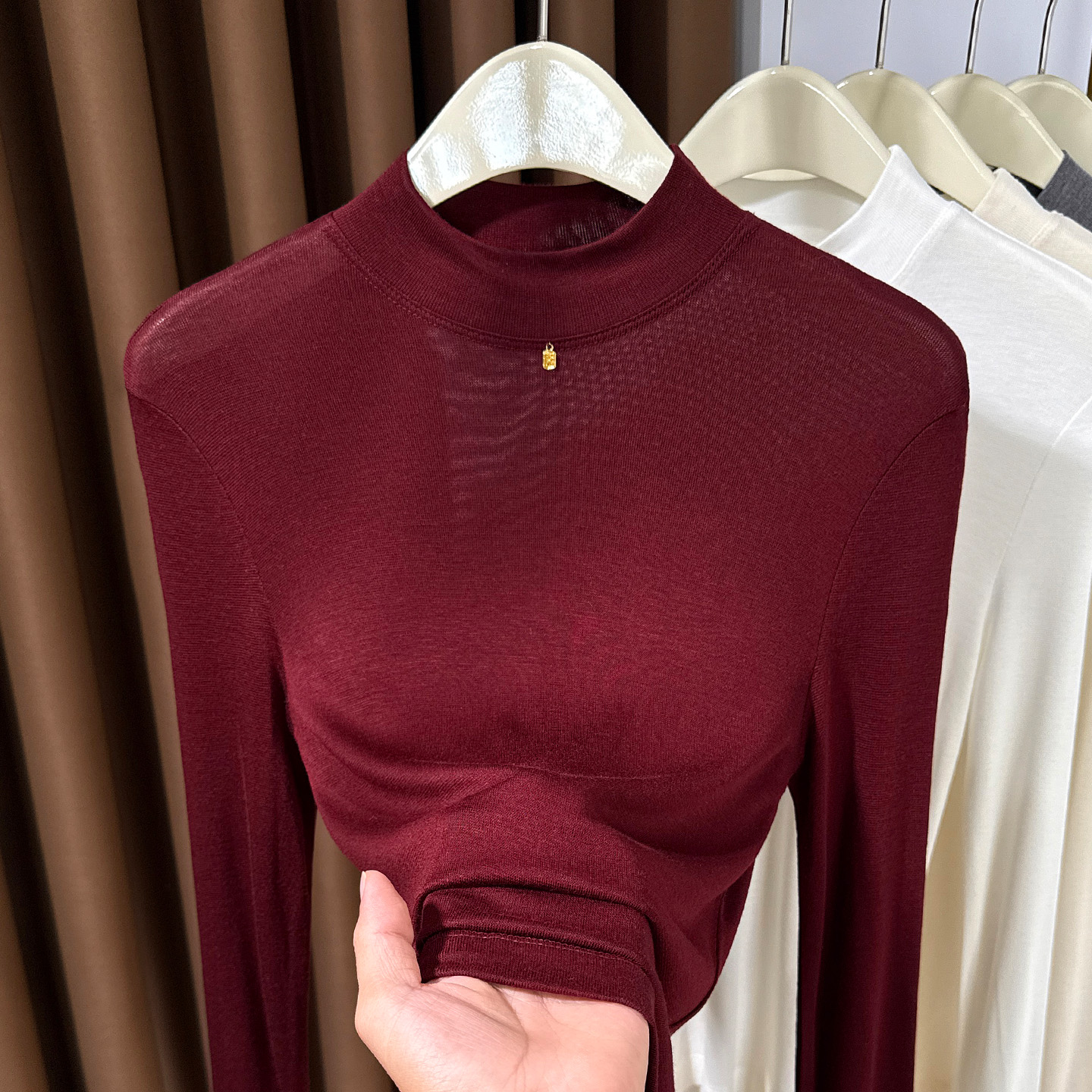 叠穿内搭洋气小衫 灰色高级感半高领软糯针织打底衫 薄款 秋季 女长袖
