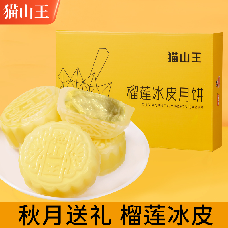 榴芒一刻榴莲冰皮月饼广式 高档中秋团购送礼品 月饼流心月饼礼盒装