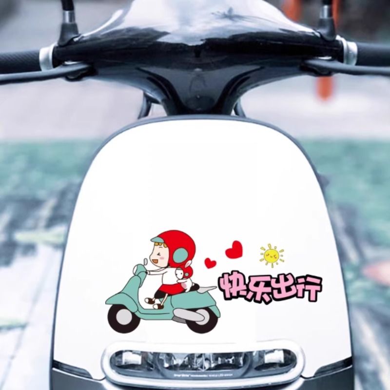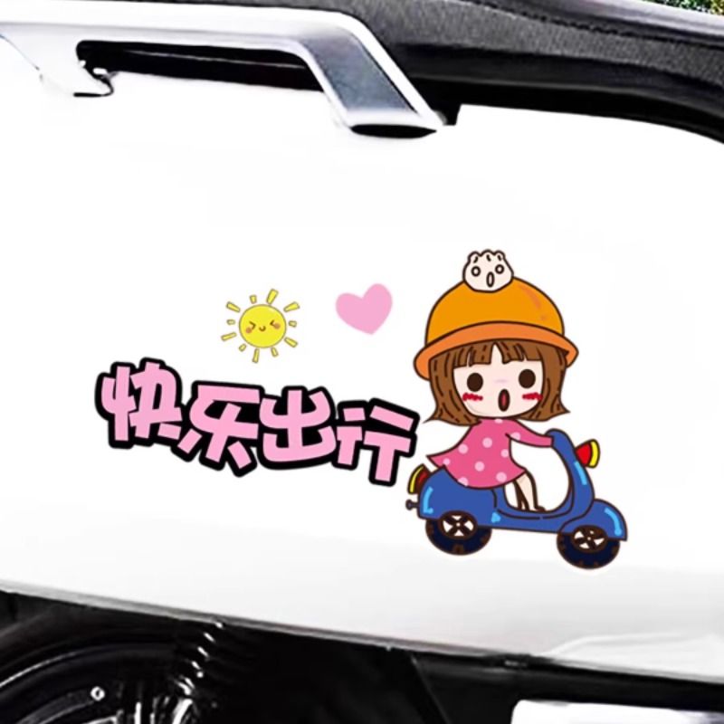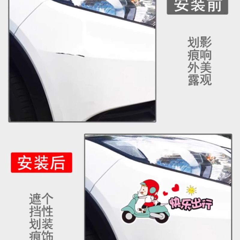 汽车贴纸划痕遮挡可爱文字快乐出行个性 饰贴纸 创意电动车装