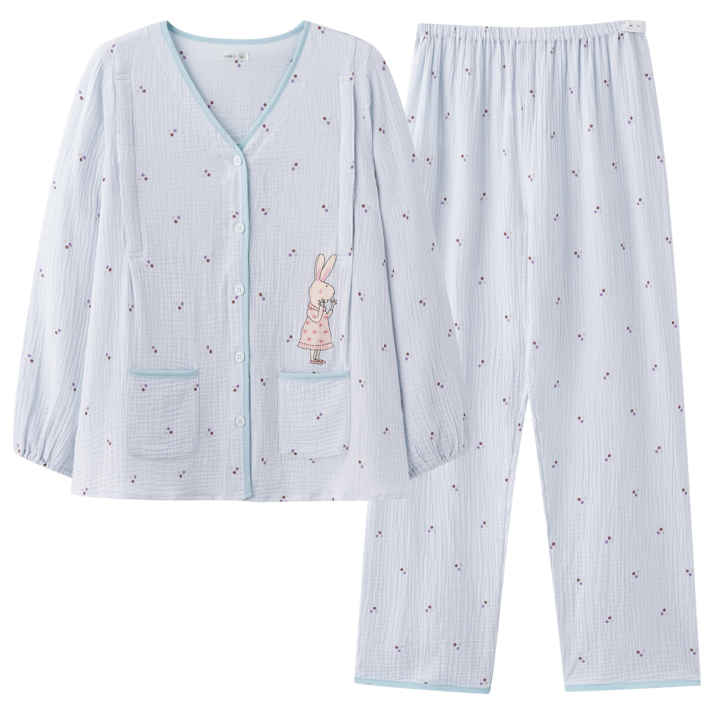 2025新款 家居服套装 睡衣女云朵棉双层纱布甜美刺绣长袖 猫人春秋季