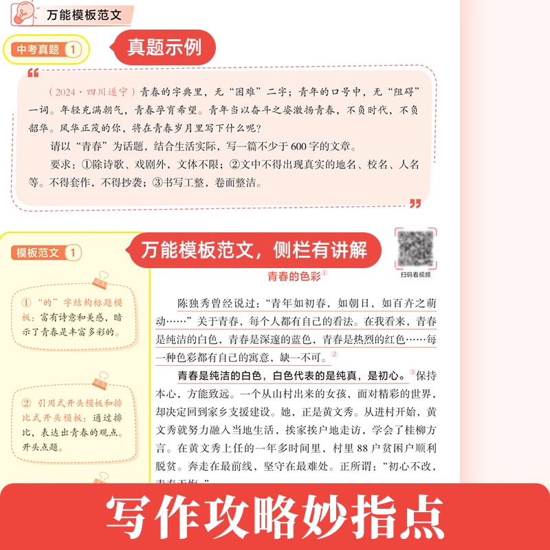 2025版 作业帮初中生语文作文万能模板素材七八九年级初一二三中考满分作文素材思维导图名师视频讲解九大主题押题预测精选高分范文