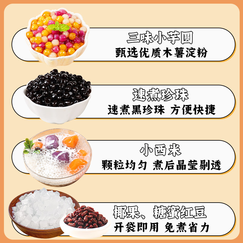奶茶店专用小料珍珠芋圆椰果蜜豆小包装 爆爆珠晶球脆波波冰粉配料