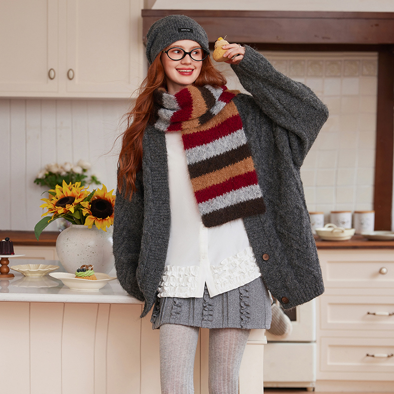 白鹿语韩系慵懒风V领麻花针织开衫 温柔宽松毛衣 外套25秋冬新款