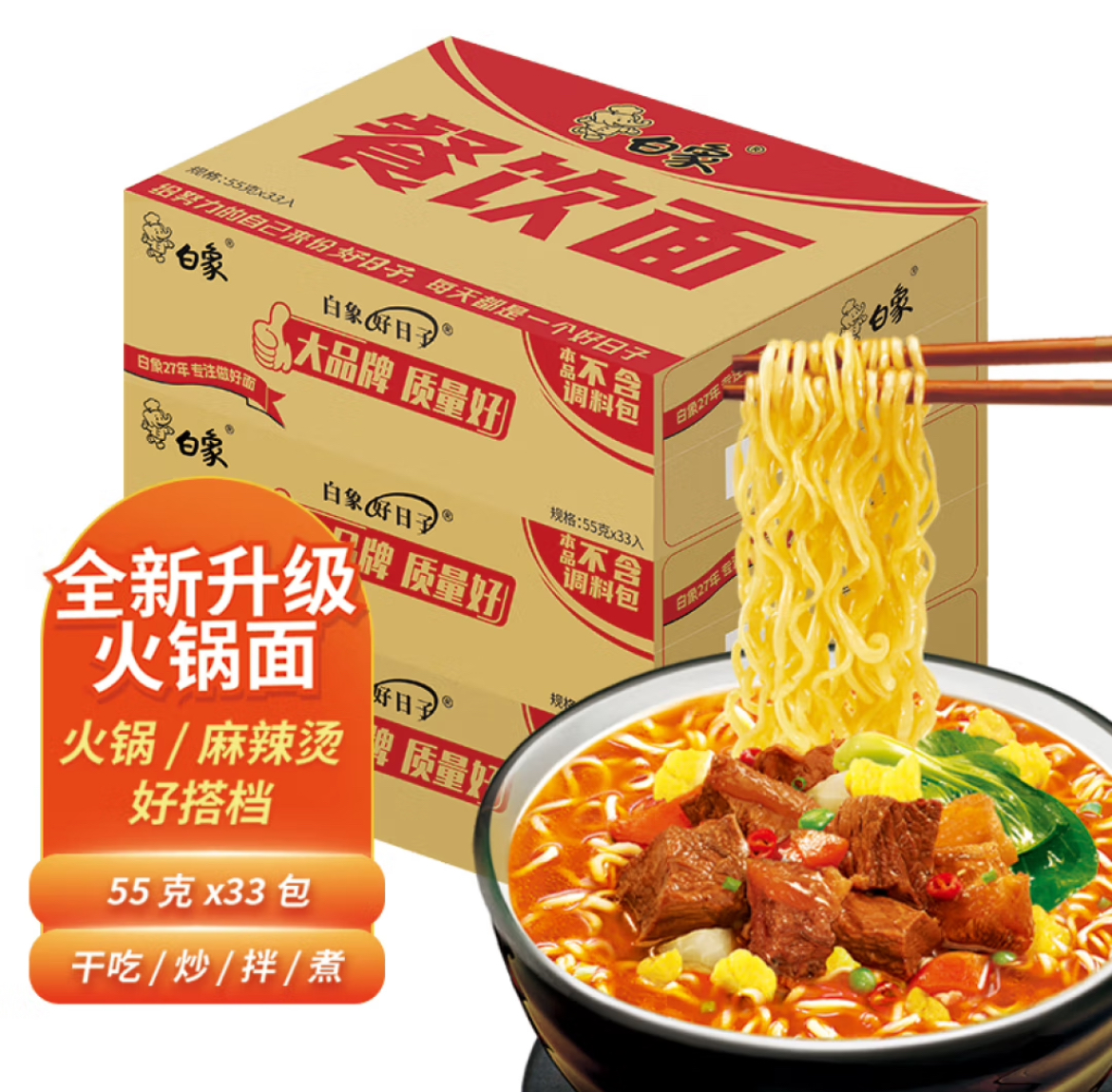 白象方便面面饼火锅面泡面面饼煮面炒面独立包装 面饼整箱麻辣烫面