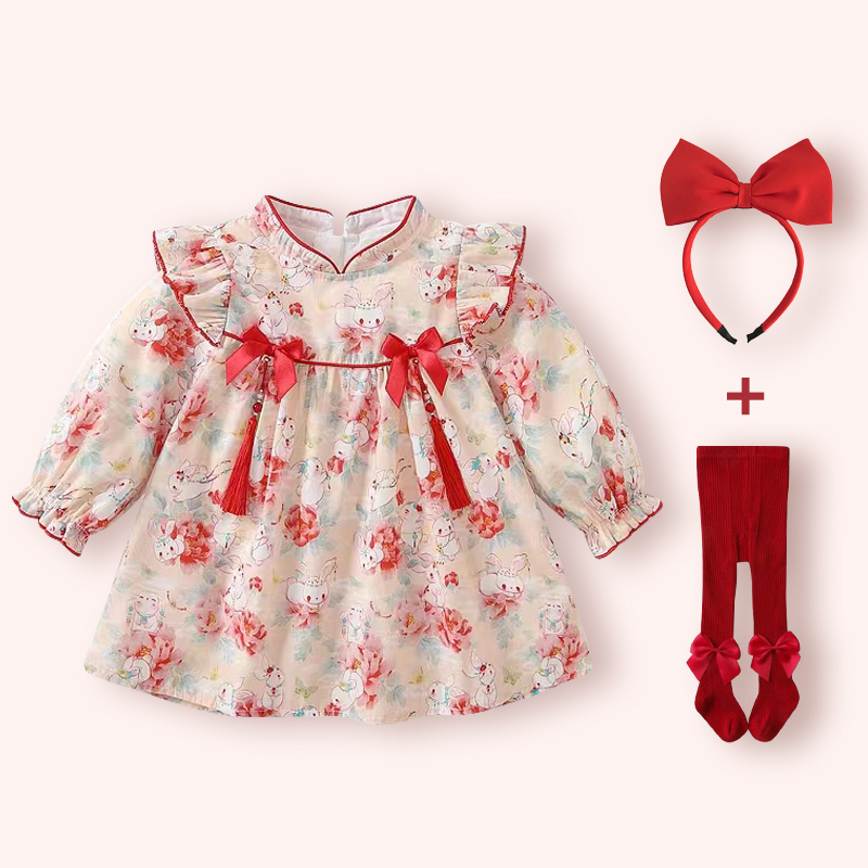 设计感小众收腰甜美拼接裙子 连衣裙女秋季 法式 富家千金风粉色长袖