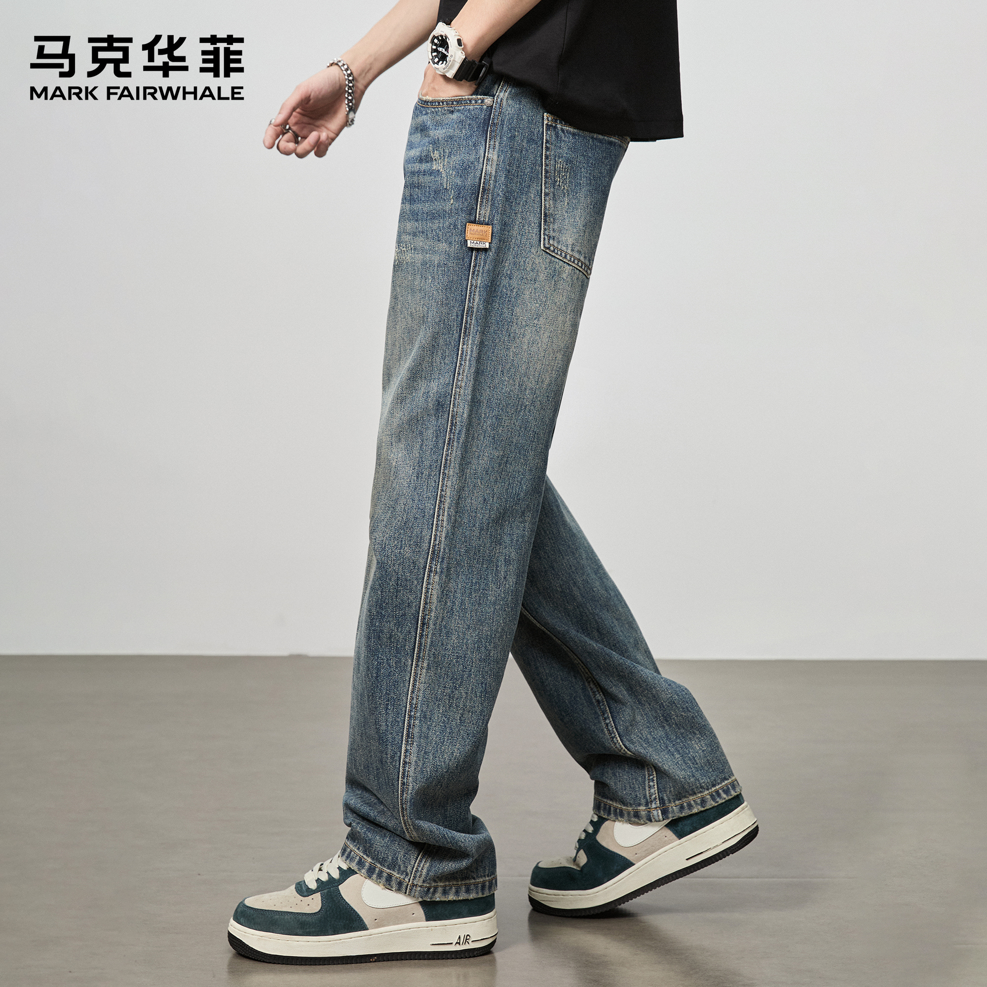 复古vibe水洗宽松微喇休闲裤 马克华菲牛仔裤 潮牌美式 春秋季 男新款
