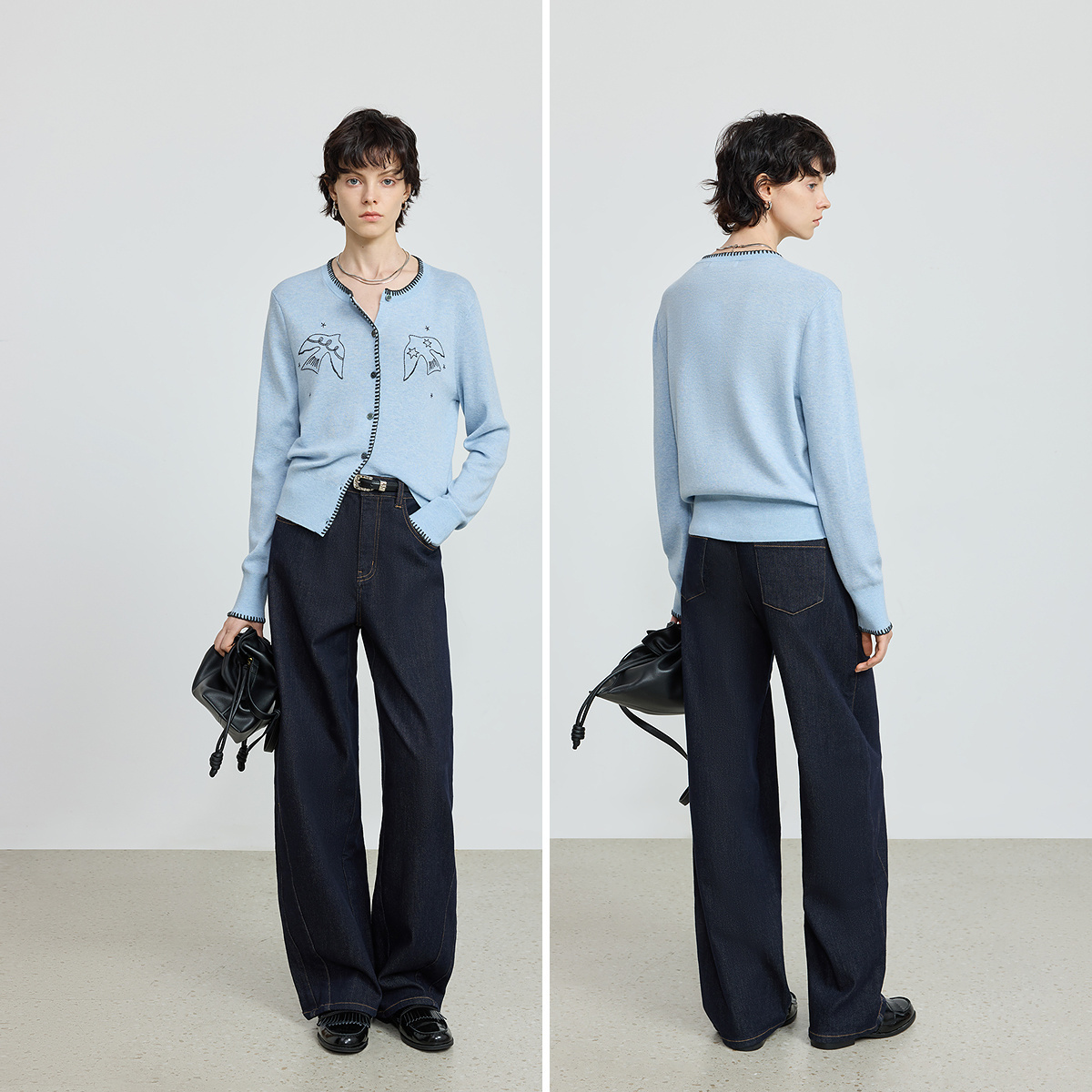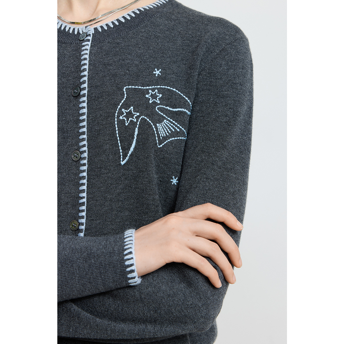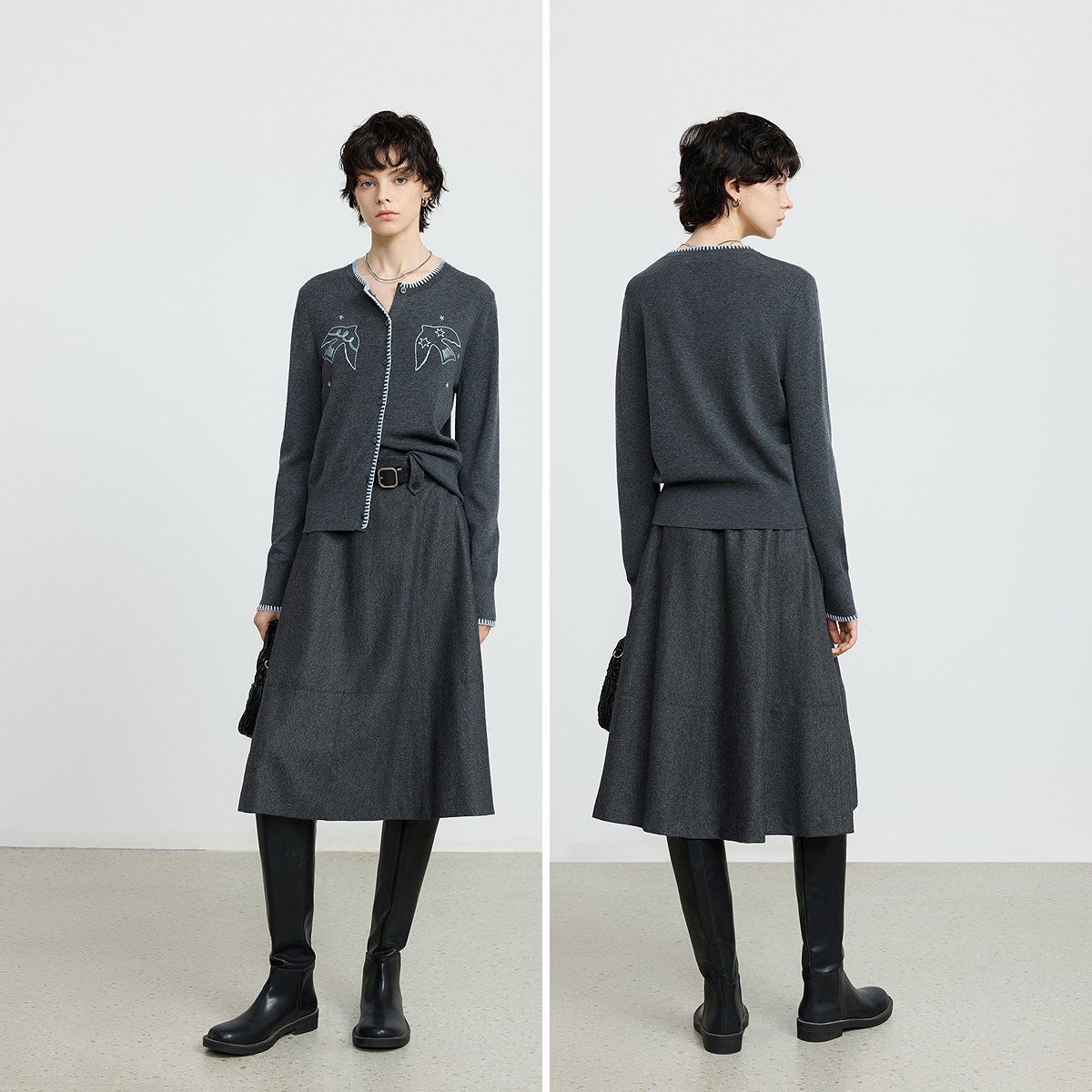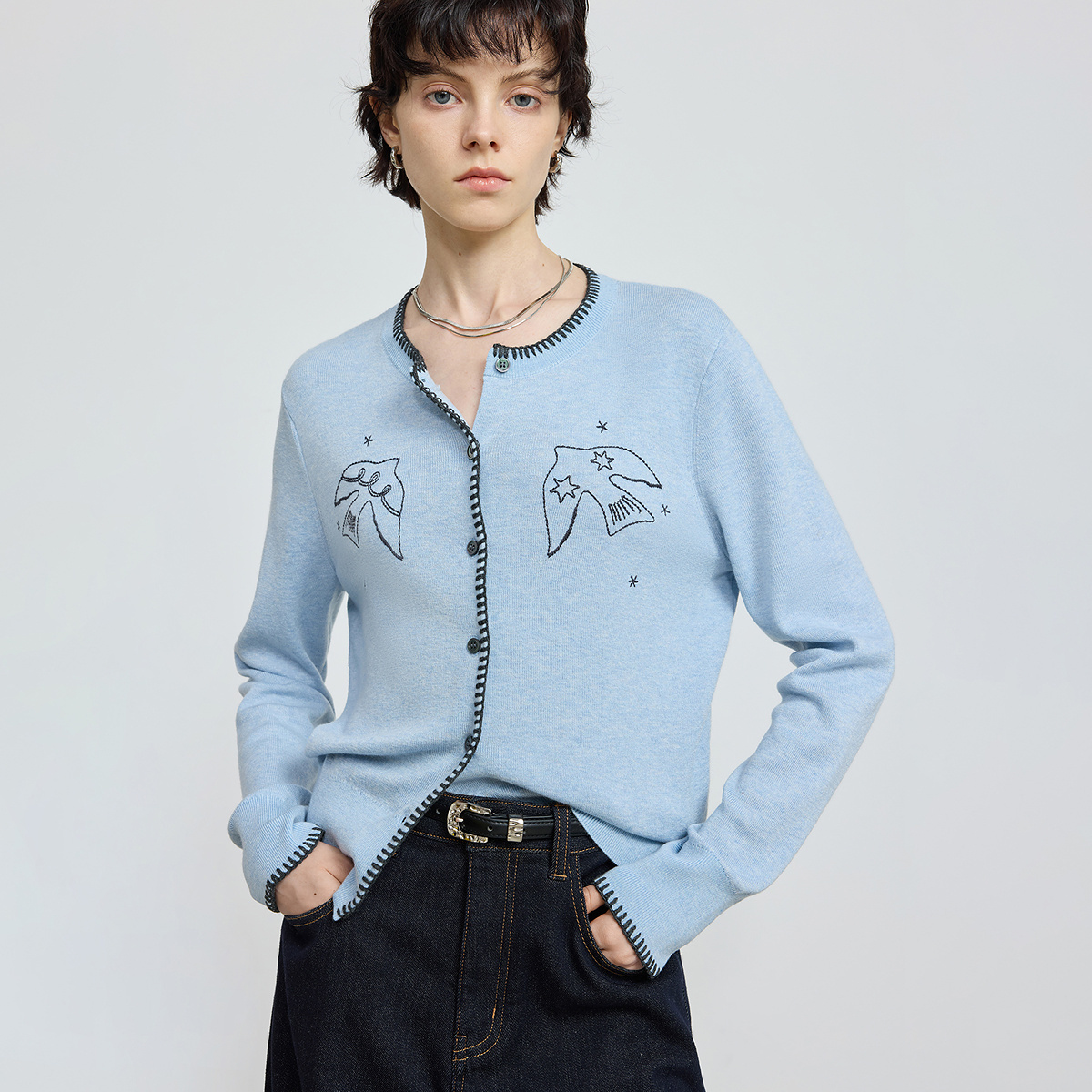 针织开衫 羊毛混纺贝壳绣气质通勤圆领刺绣长袖 女装 LILY2025冬新款