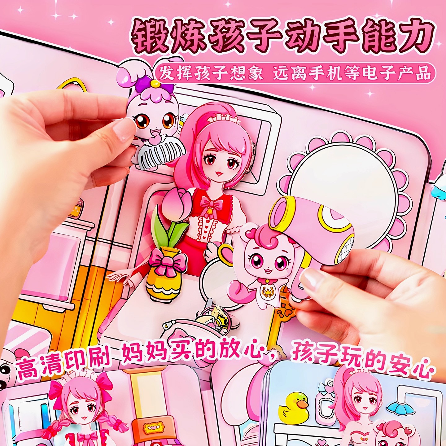 奇妙萌可磁力安静书新款 贴纸 女孩子儿童玩具6岁以上爱心公主换装