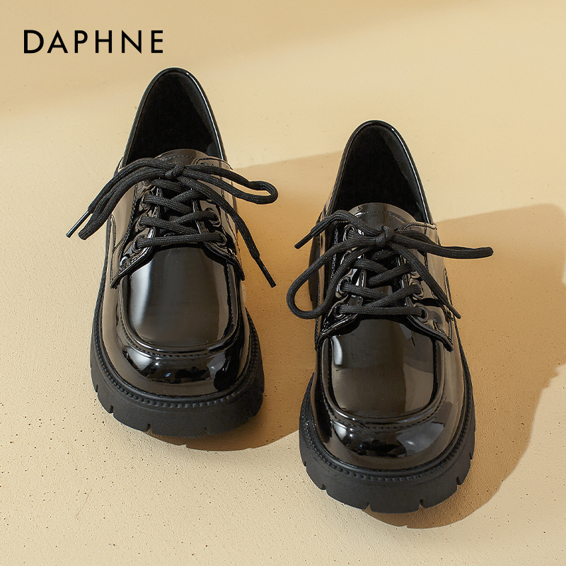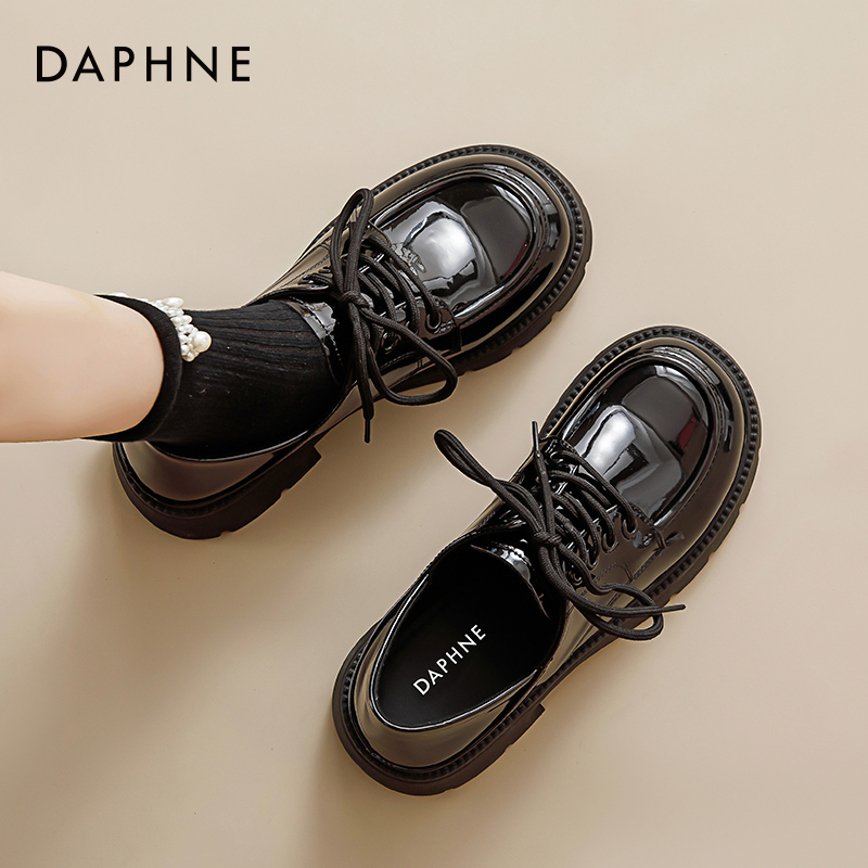 深口通勤jk单鞋 秋厚底英伦风小皮鞋 子 女2025新款 达芙妮黑色乐福鞋