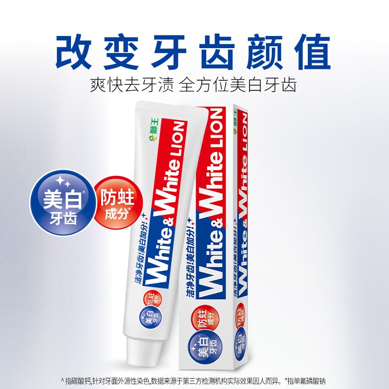 去渍牙膏 日本LION狮王美白牙膏150g 3去黄进口清新口气 自营