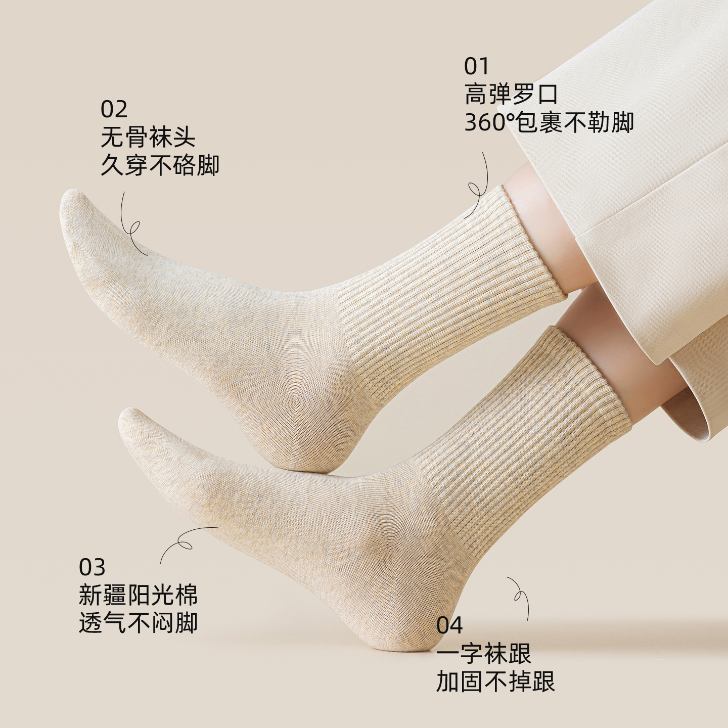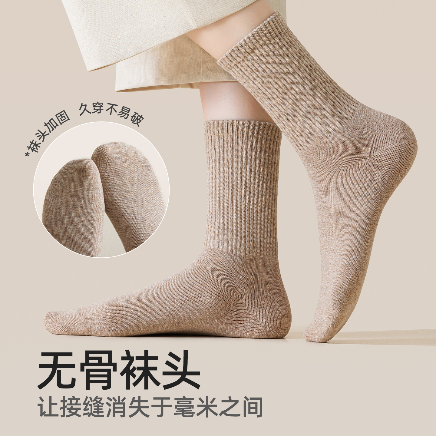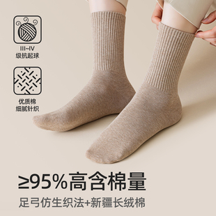 袜子纯棉女春秋季 白色中筒袜女士抗菌防臭运动抗起球棉袜秋冬长袜