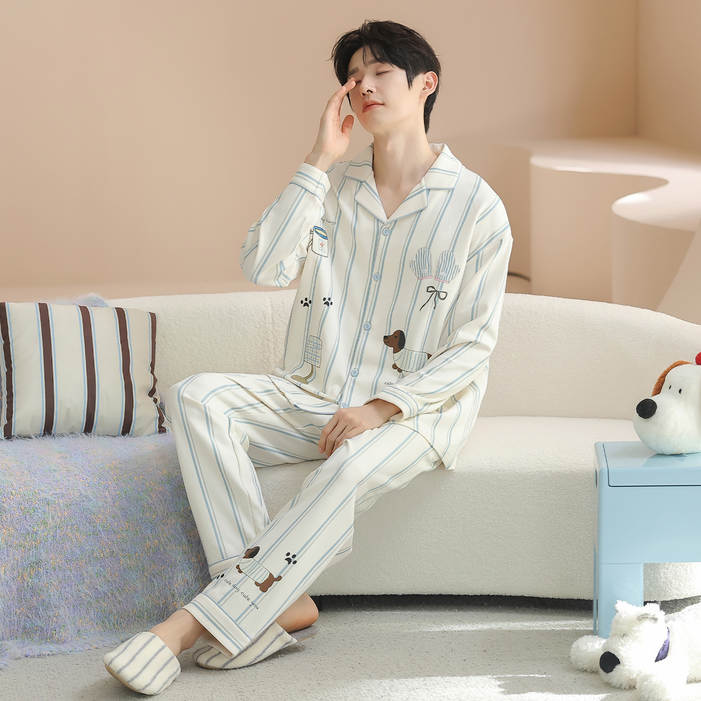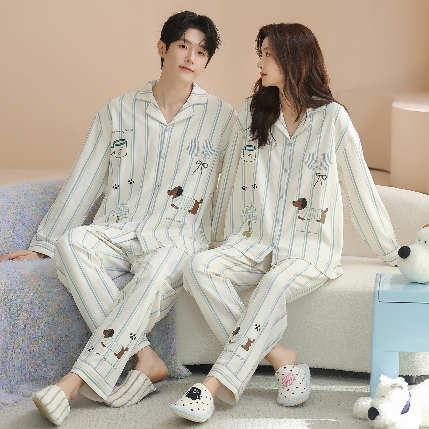 新款 抗菌男款 情侣睡衣纯棉长袖 女士休闲大码 家居服 套装 芬腾春秋季