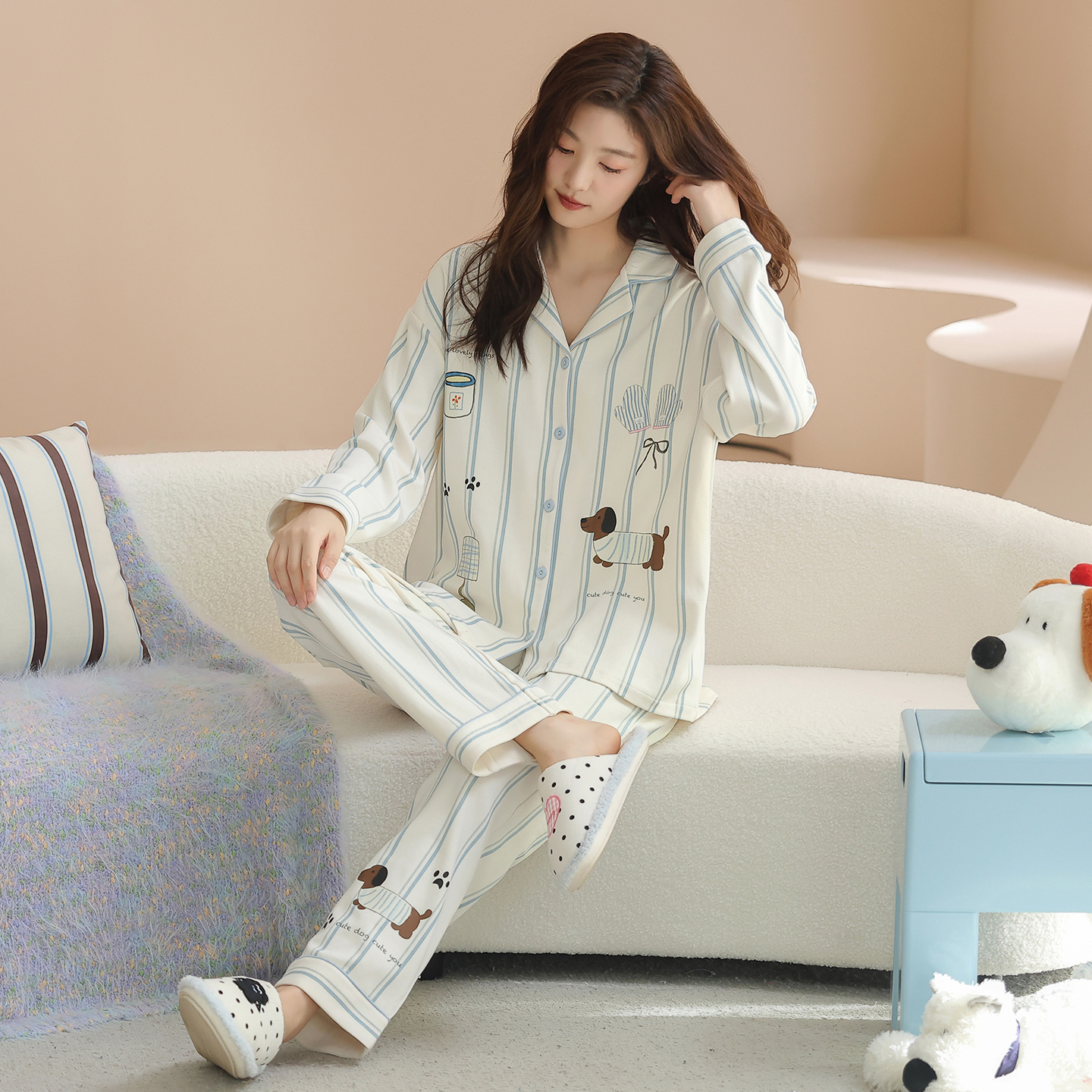 家居服女款 纯棉长袖 夏季 薄款 家乐芬睡衣女士春秋款 空调服套装 秋季