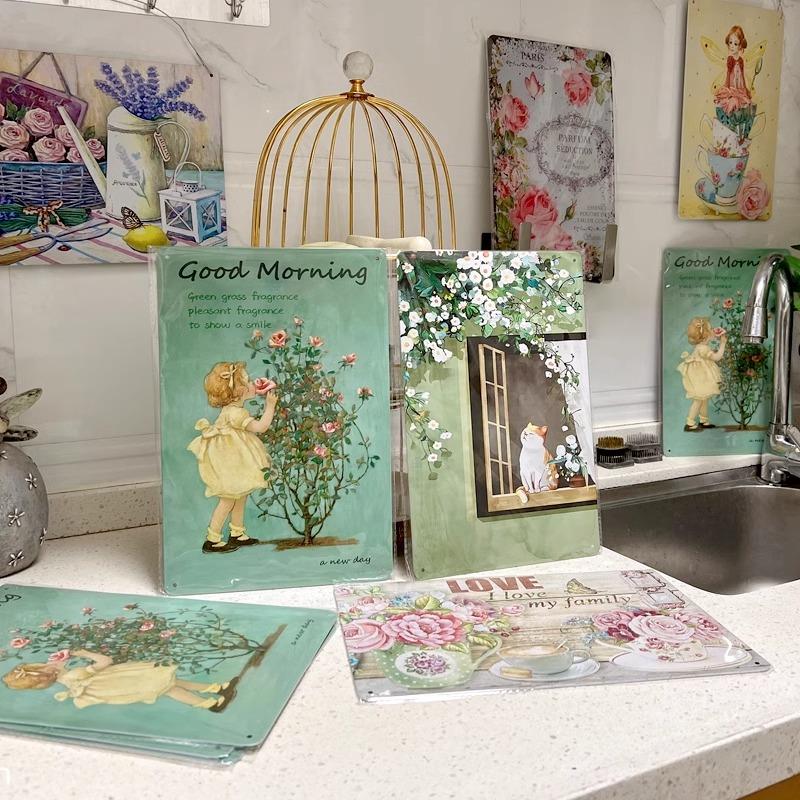 复古花卉人物铁皮画花园田园阳台户外造景布置墙面做旧装 饰品挂件
