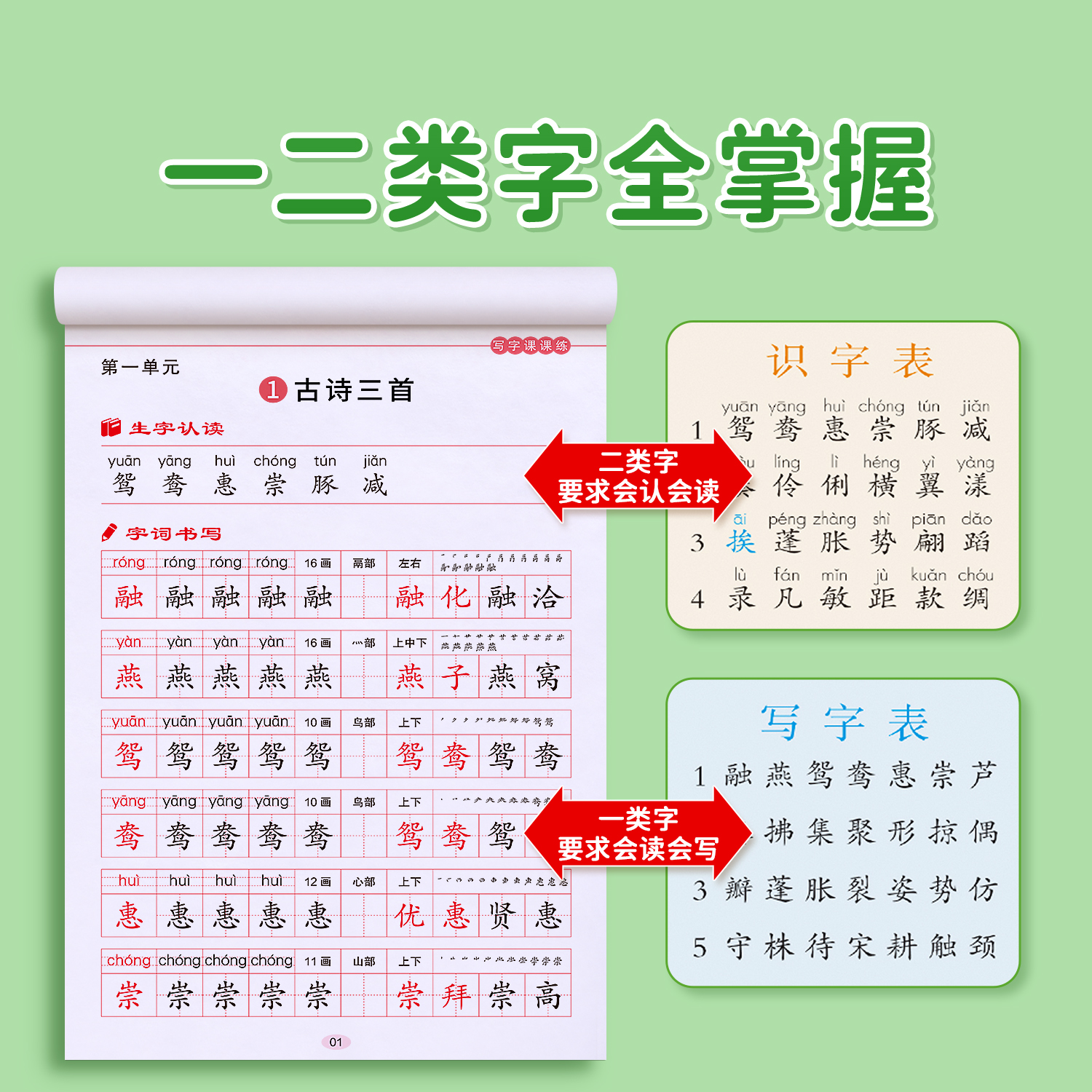 每日一练楷书钢笔临摹字帖练习 小学课本同步练字帖三年级上册下册字帖练字语文英语小学生专用正版 2025新版 小学语文同步字帖人教版