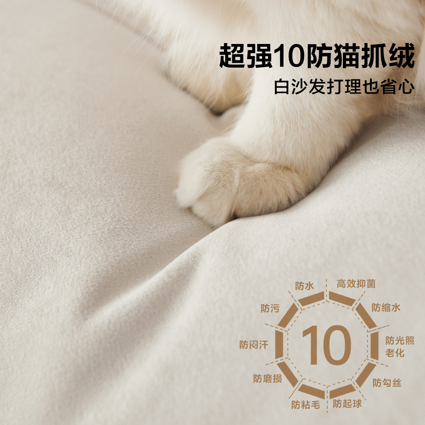 全友家居意式 极简劳伦斯沙发客厅实木框架家具白色防猫抓布艺沙发