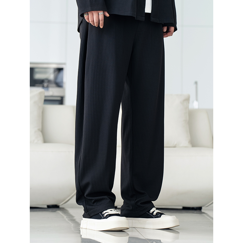 男装 胖子加肥加大宽松显瘦肌理感长裤 2025秋季 休闲裤 新款 黑劲大码