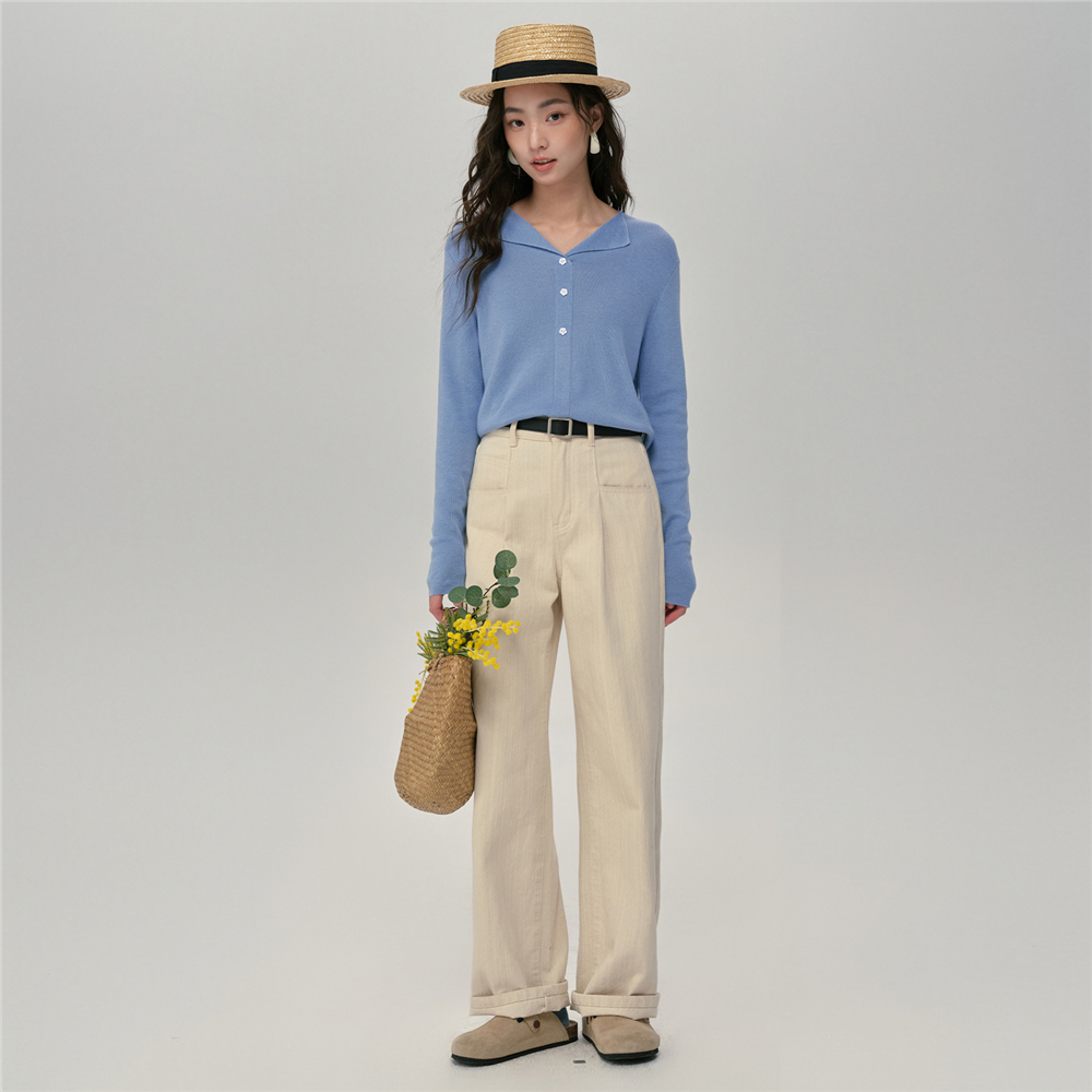 假门筒修身 女新款 针织上衣18355509 佐丹奴窄v领针织衫 设计师款