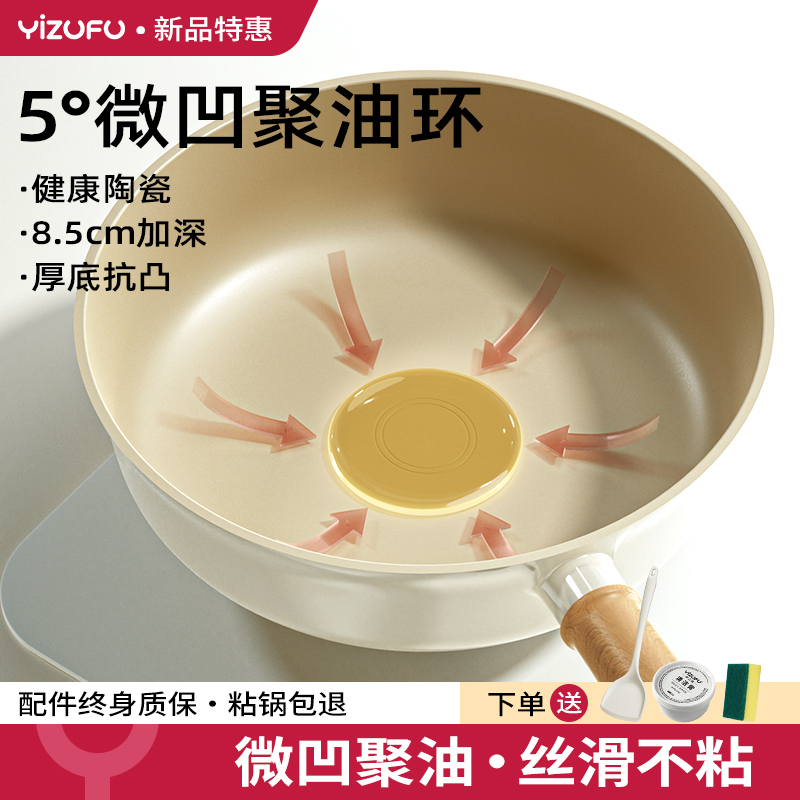聚油煎锅钛陶瓷平底锅不粘锅家用牛排小煎锅煎蛋煎饼专用电磁炉N
