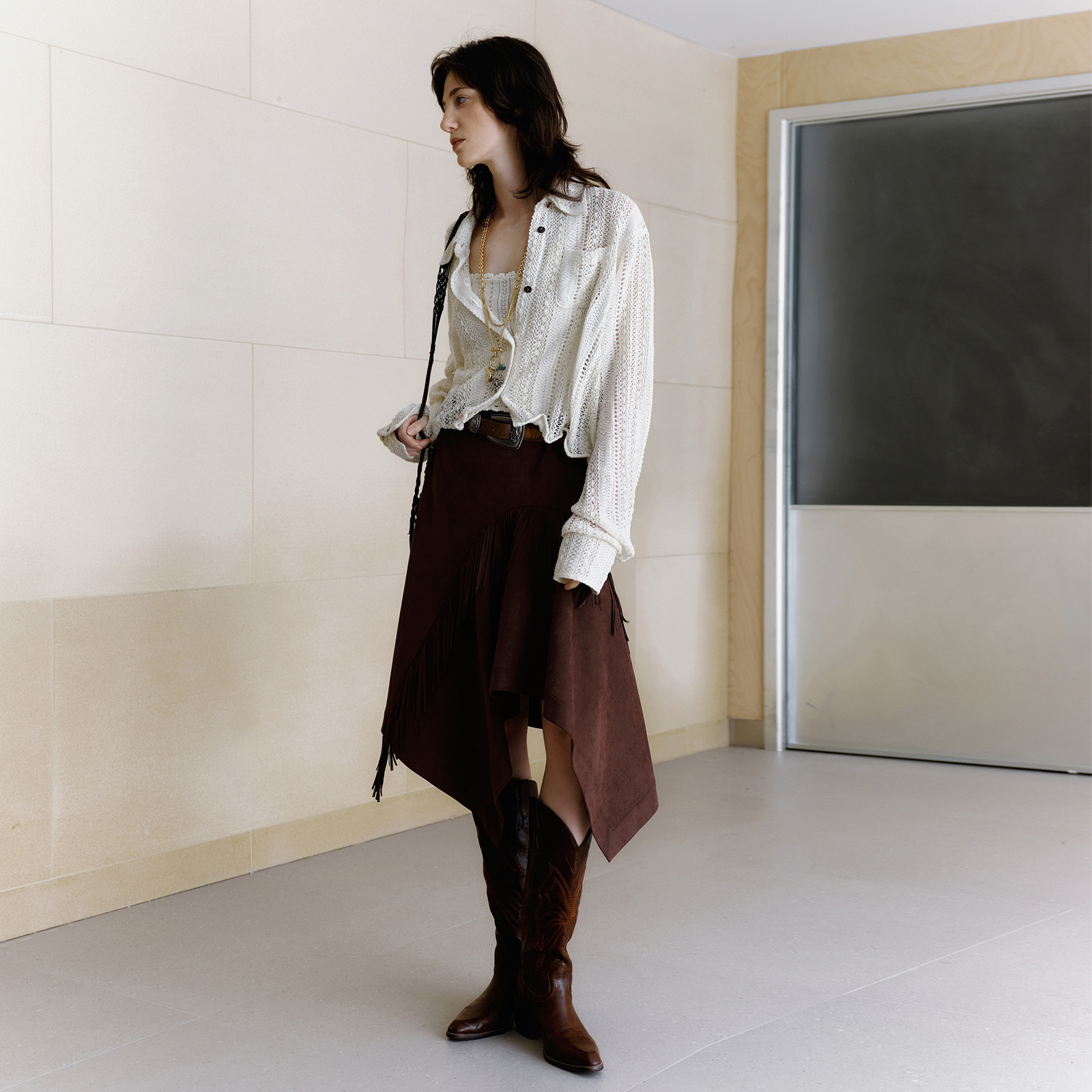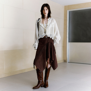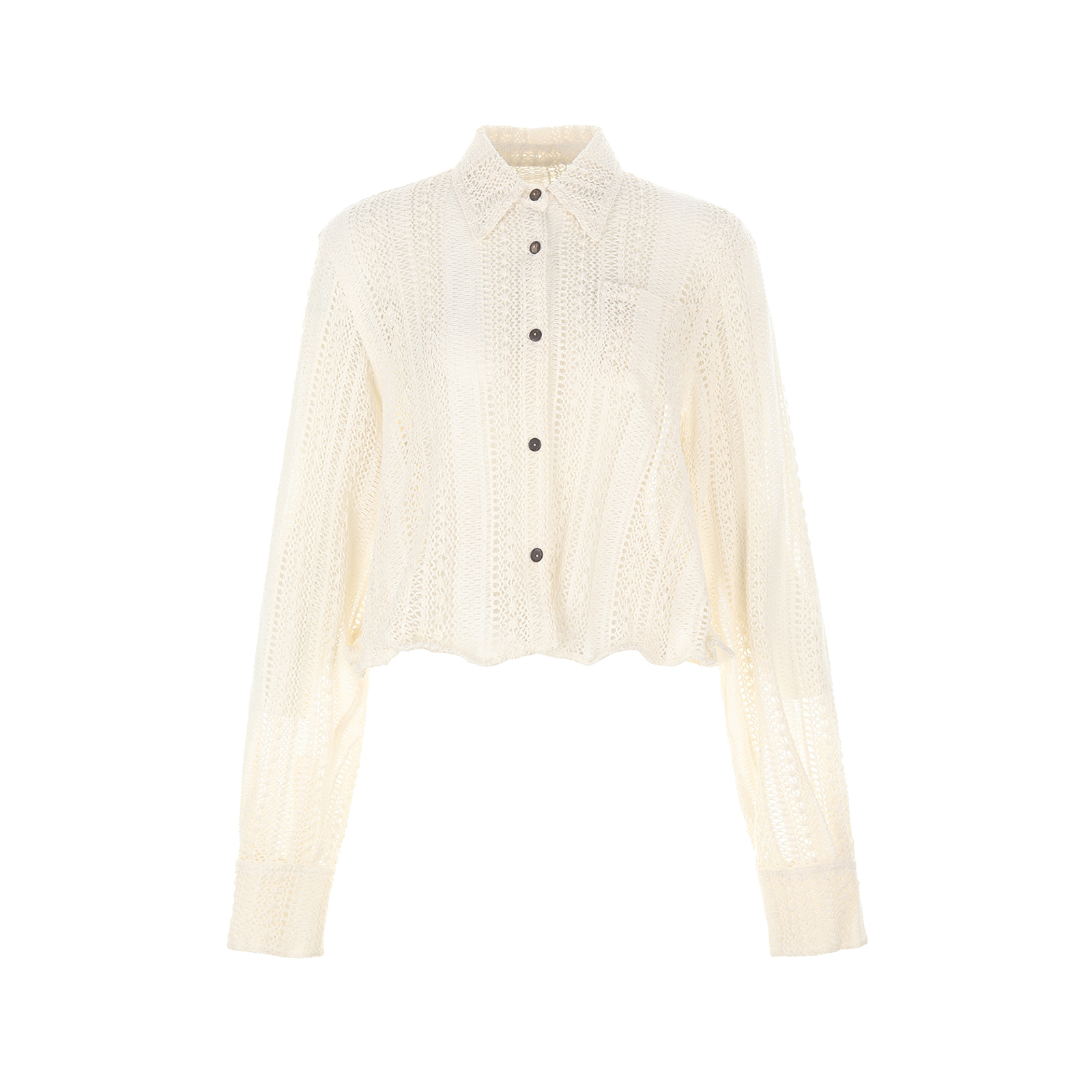 2025早秋新品 衬衫 米白色时髦百搭上衣女 try镂空编织廓形短款 wana