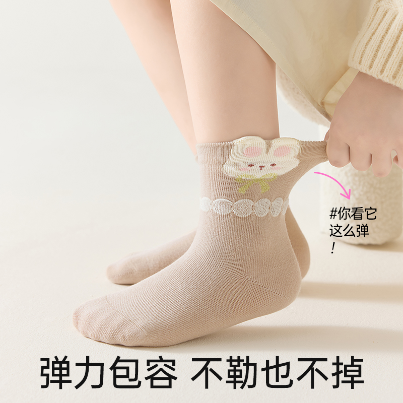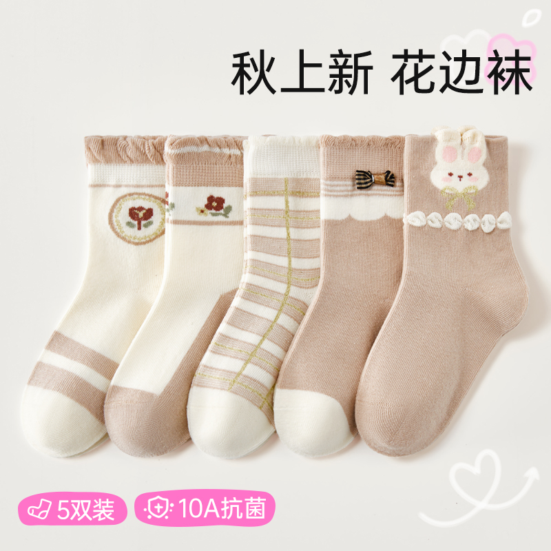 女童袜子春秋新款 女童花边童袜无骨中筒袜 A类棉袜女孩宝宝秋冬季