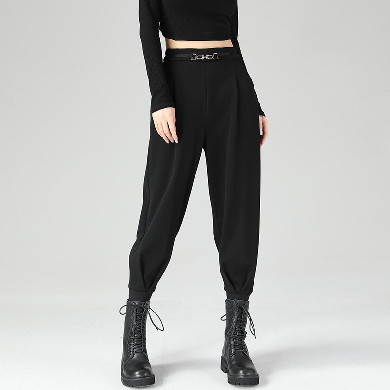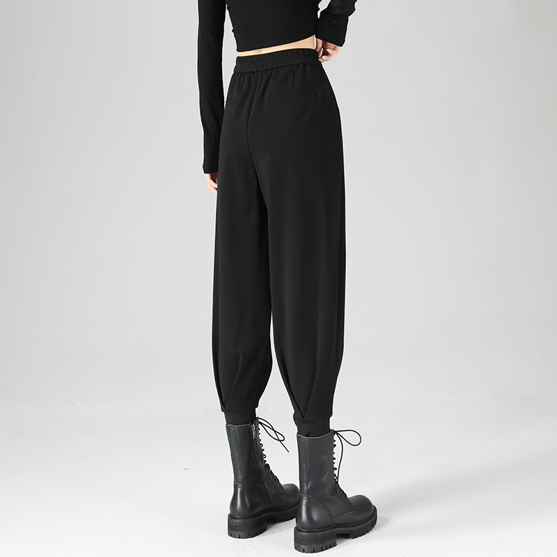 女春秋新款 休闲直筒慵懒松弛感裤 高腰垂感窄版 裤 子 西装 黑色阔腿裤