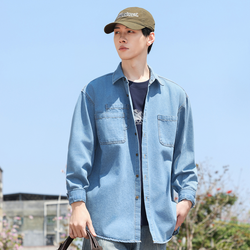 新款 休闲青年衬衣加厚上衣男装 男士 衬衫 外套潮流 牛仔纯棉长袖 秋季