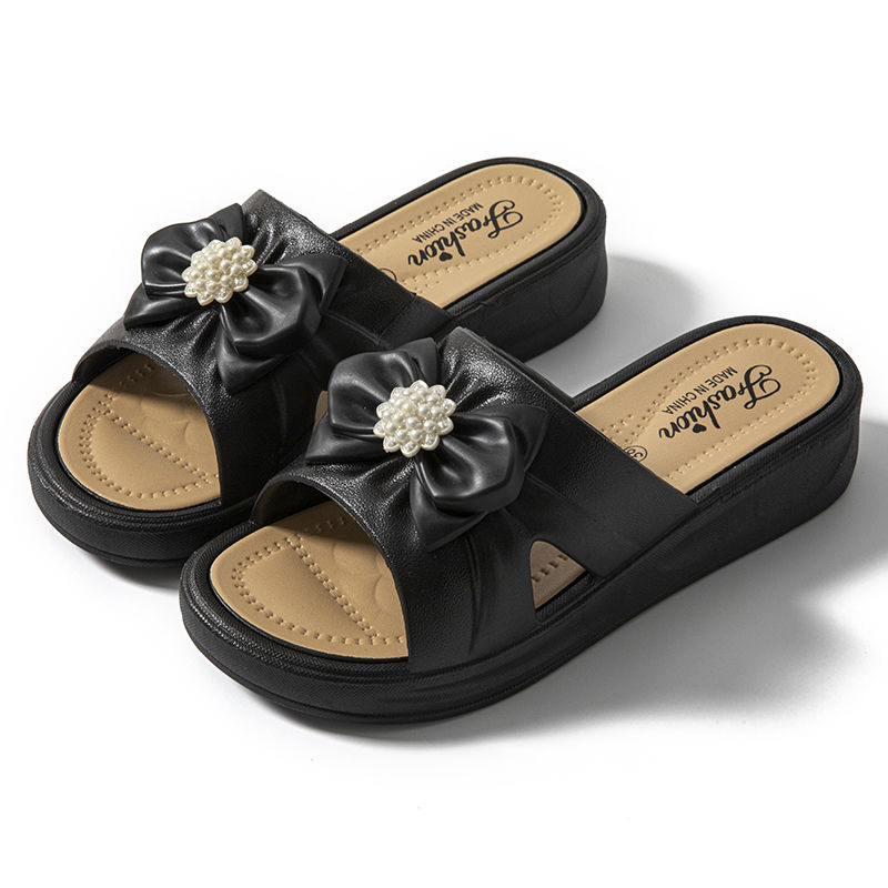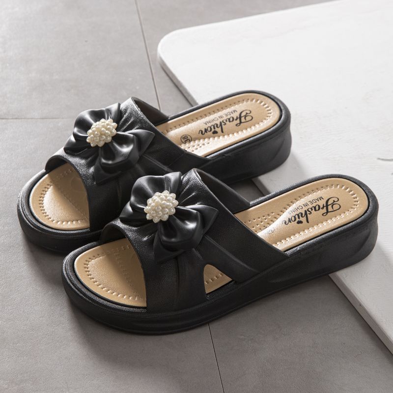 外穿蝴蝶防滑透气中老年洗澡浴室妈妈鞋 女夏季 厚底中跟凉拖鞋 新款