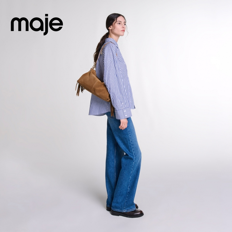 Outlets秋冬女装 衬衫 法式 翻领短款 简约宽松棉质蓝白条纹长袖 Maje