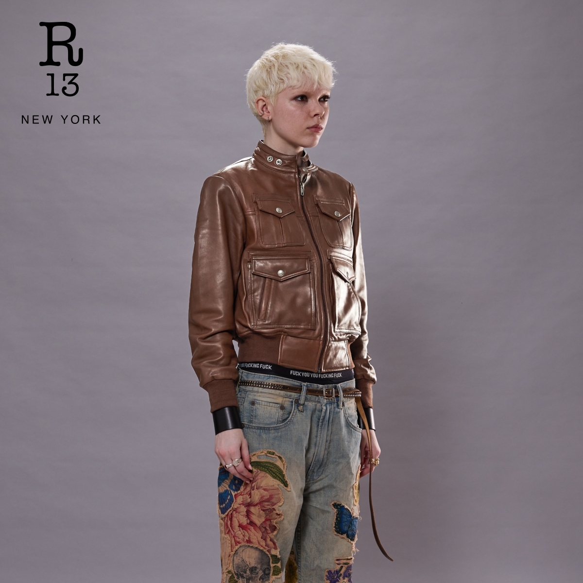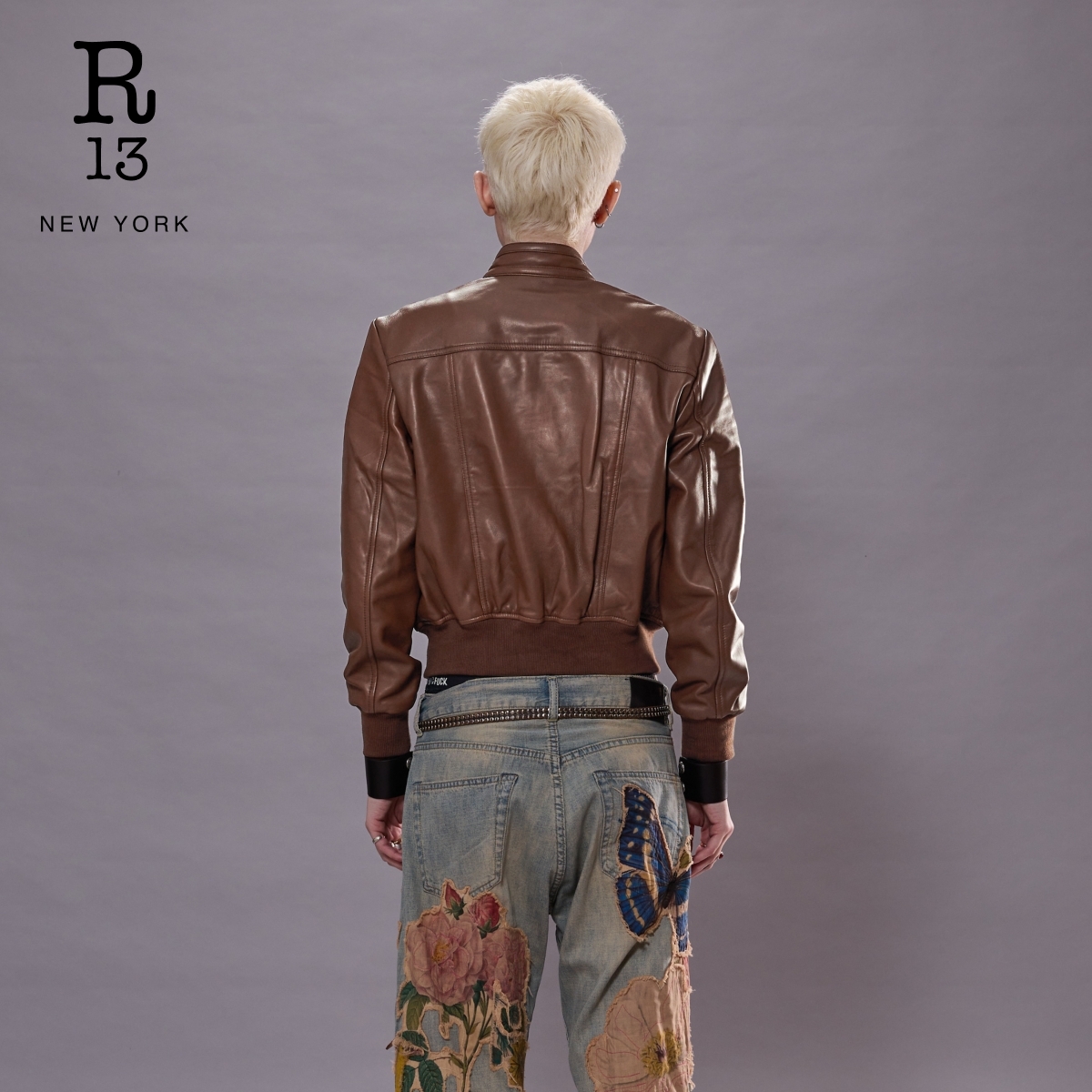 VIVIDINI油蜡皮飞行员夹克皮衣