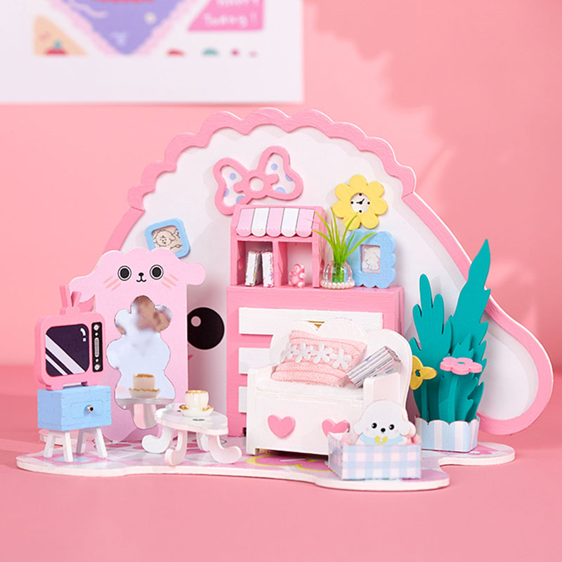 熊猫diy小屋迷你公主房间拼装 模型狗狗仿真家具带灯创意礼物摆件