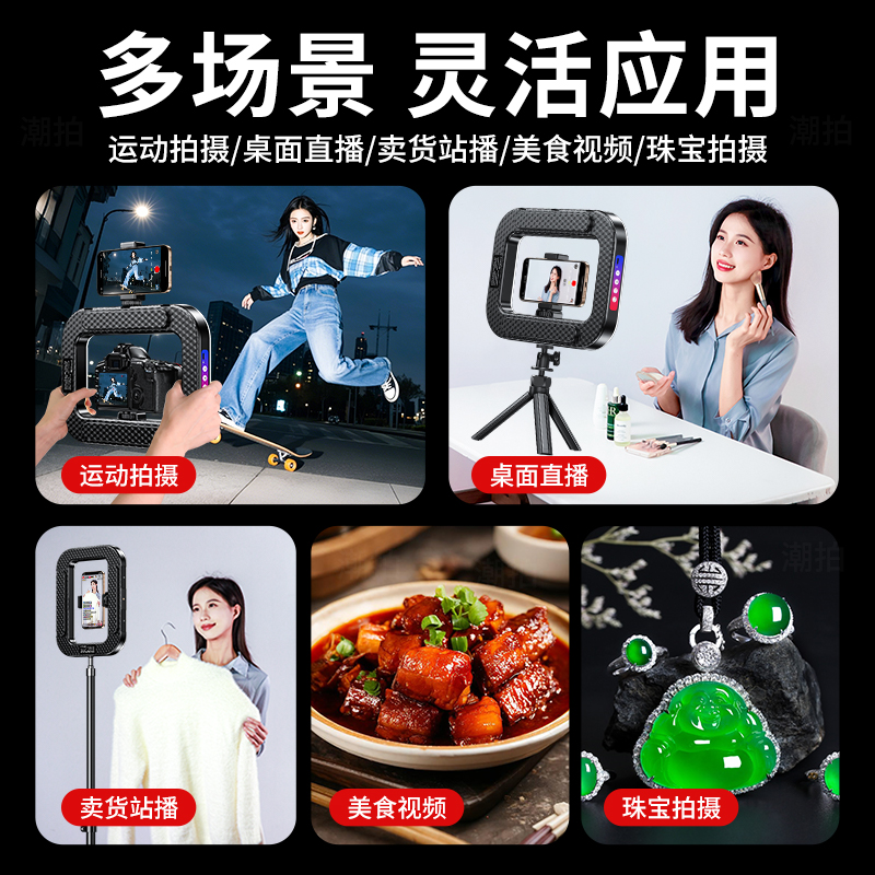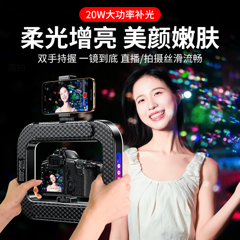 潮拍20W环形手持摄影补光灯手机兔笼便携式 直播专业外拍手持打光灯 户外拍摄人像美颜美甲拍照录视频2025新款