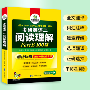 华研外语2026考研英语二阅读理解partB100篇专项训练书籍翻译词汇搭真题写作语法长难句完形填空资料考研英语一听力备考专业基础
