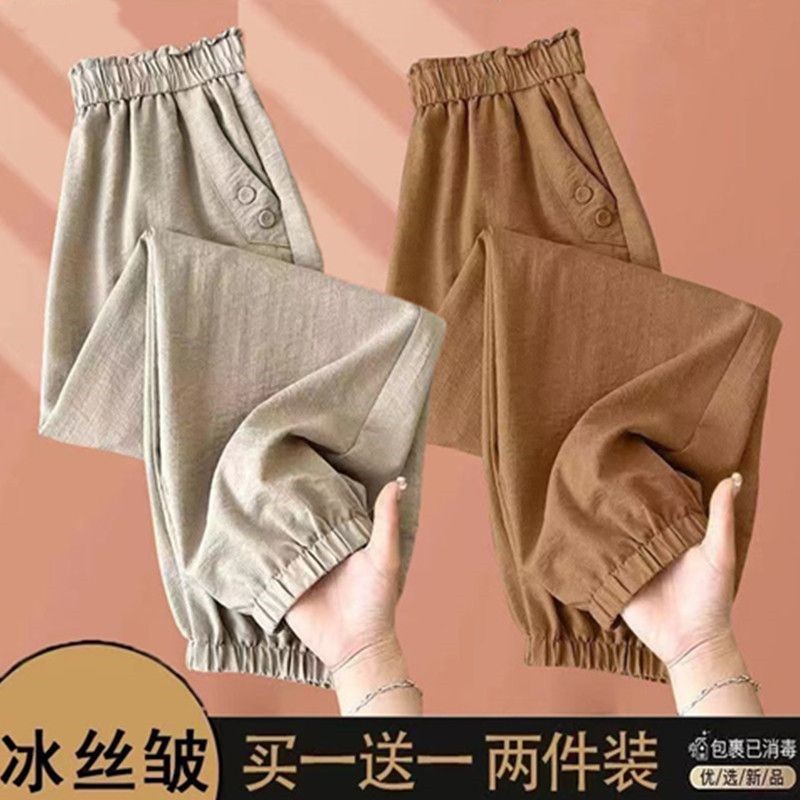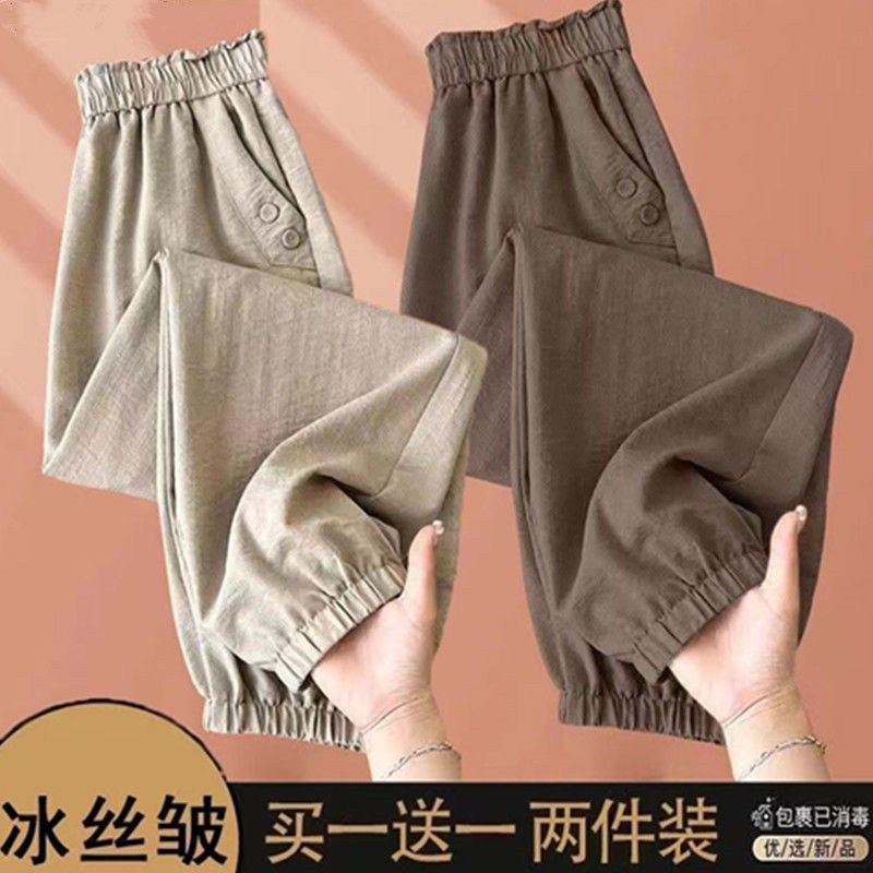 2025夏季 中老年妈妈九分裤 新款 子宽松显瘦哈伦裤 女 裤 垂感冰丝女裤