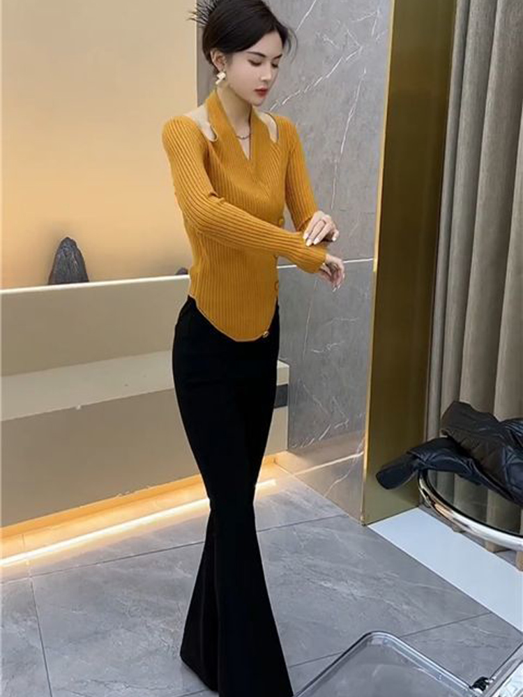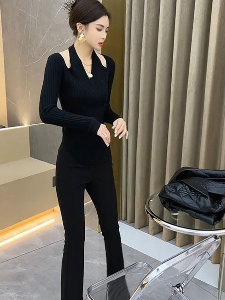 微喇裤 2024网红气质时尚 高档原创显瘦打底衫 春秋女新款 两件套 套装