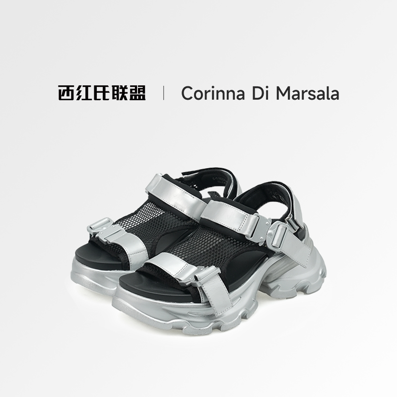 魔术贴增高运动厚底机甲女鞋 Corinna 凉鞋 Marsala2025年新款