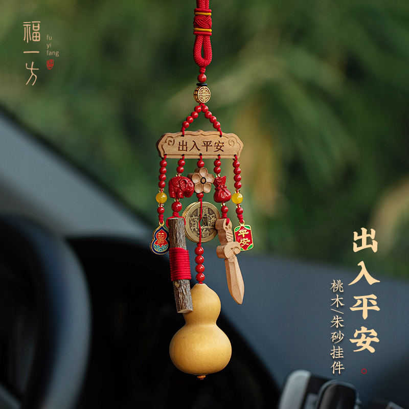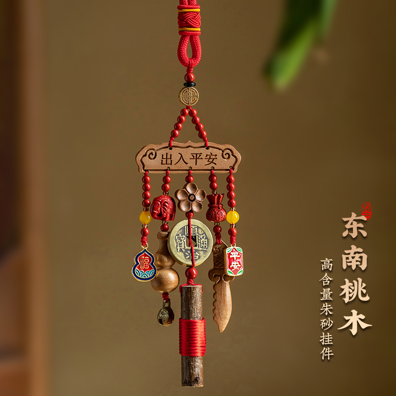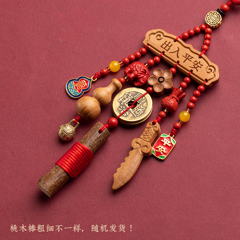 正品 朱砂出入平安桃树枝宝宝婴儿汽车挂件本命年车载吊坠儿童摆件