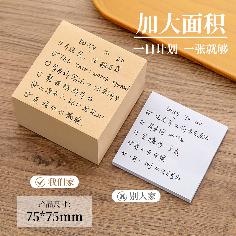 便利贴粘性强学生用便签贴纸牛皮纸简约记事贴空白留言n次贴可撕小便签本ins大号办公创意厚便利贴初中生专用