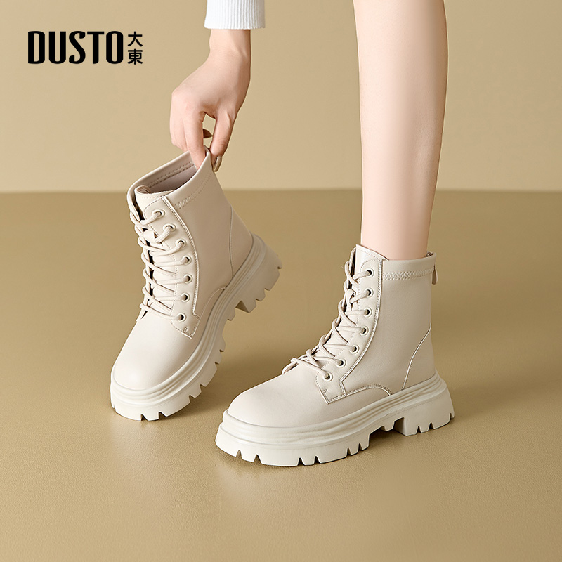 加绒靴子美拉德 冬季 达芙妮堆堆短靴女2025新款 秋冬厚底马丁靴女款