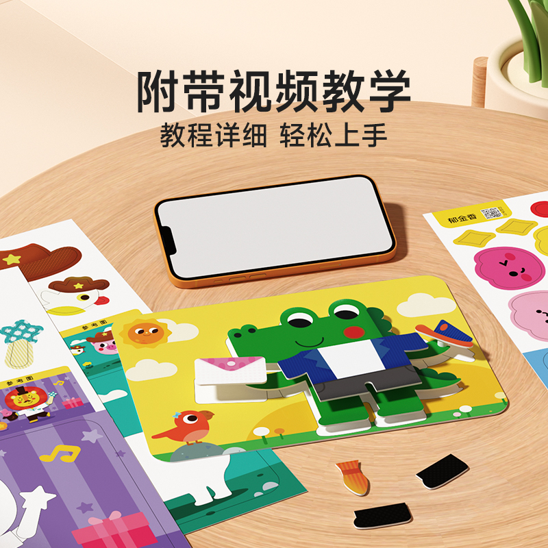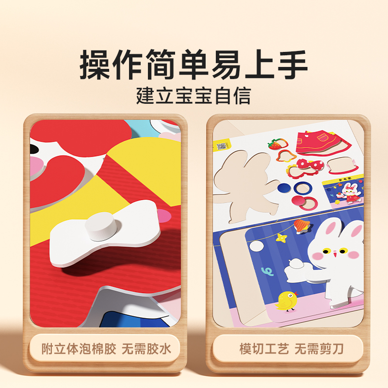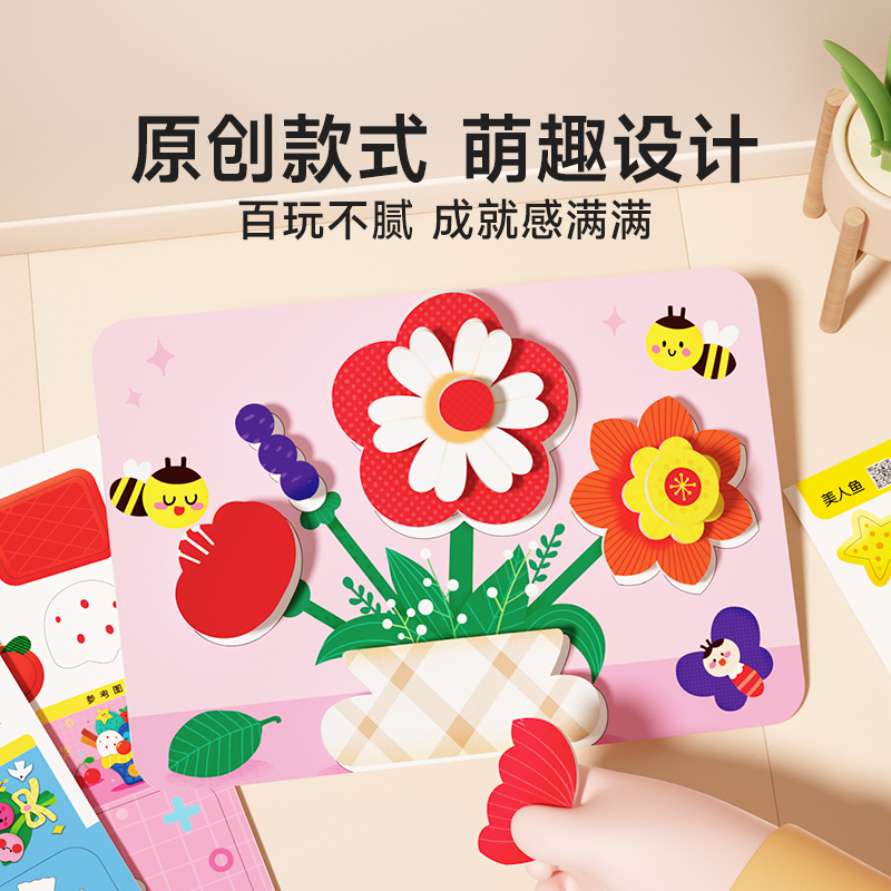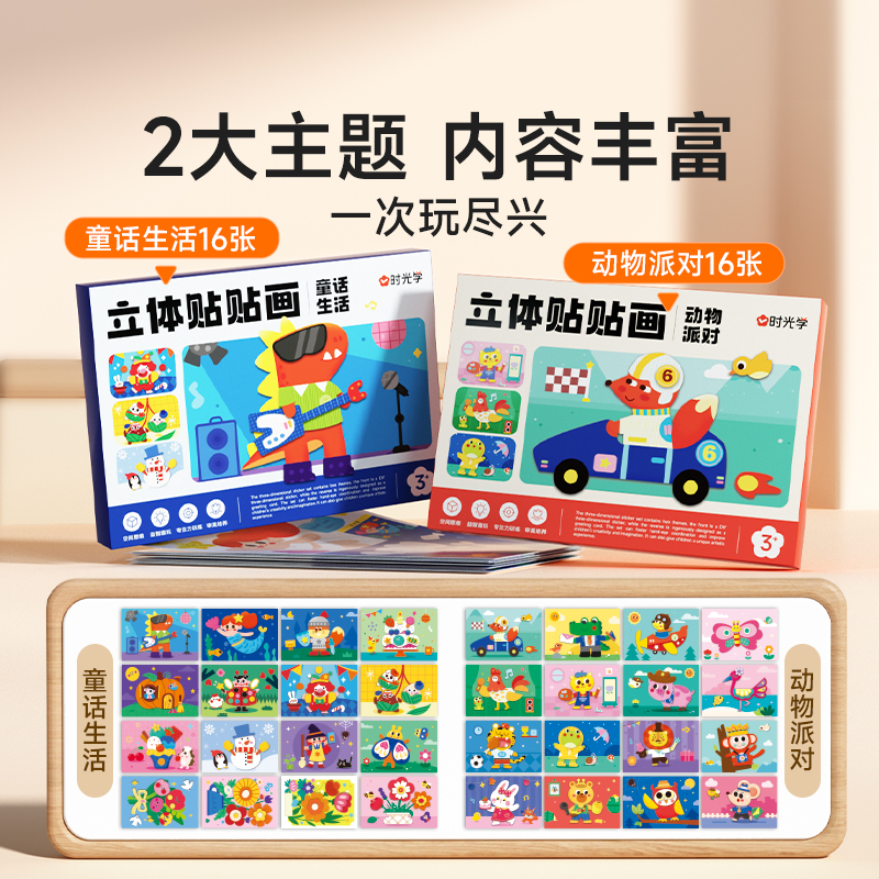 时光学手工diy益智立体粘贴画趣味3D操作简单原创款 萌趣设计幼儿园益智玩具男女孩无需剪刀立体反复粘贴