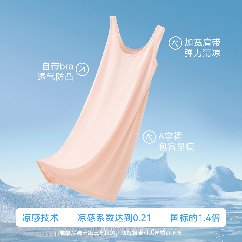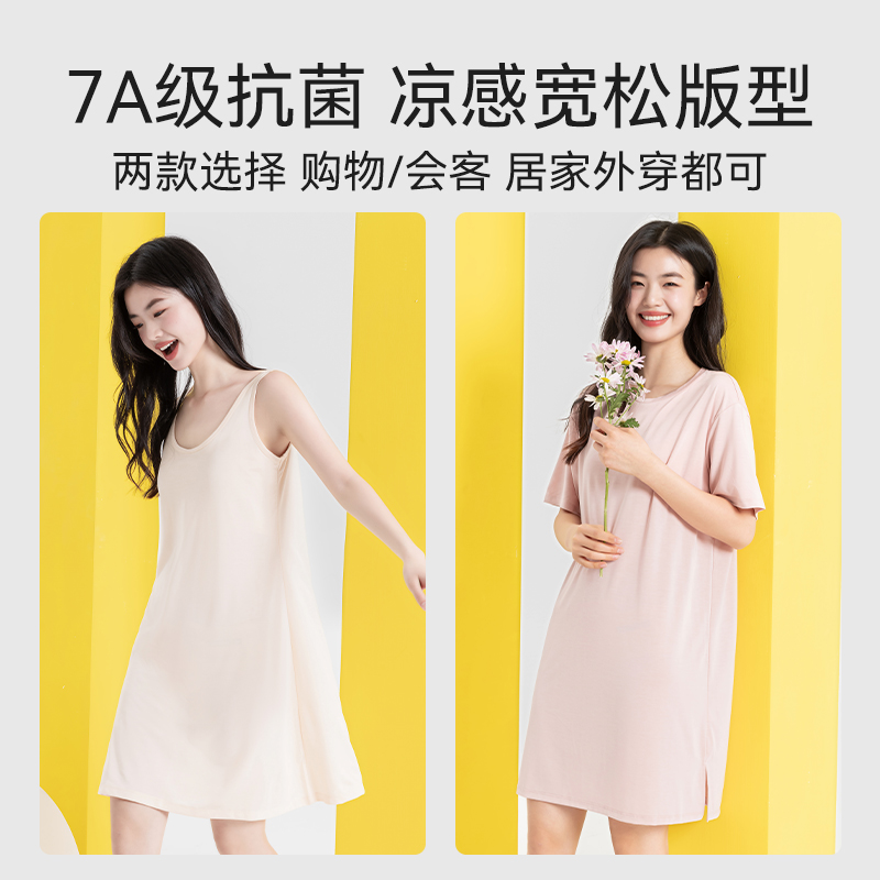 蕉内棉棉300Sleep女款 女士吊带睡裙 睡衣带杯带胸垫莫代尔冰丝短袖