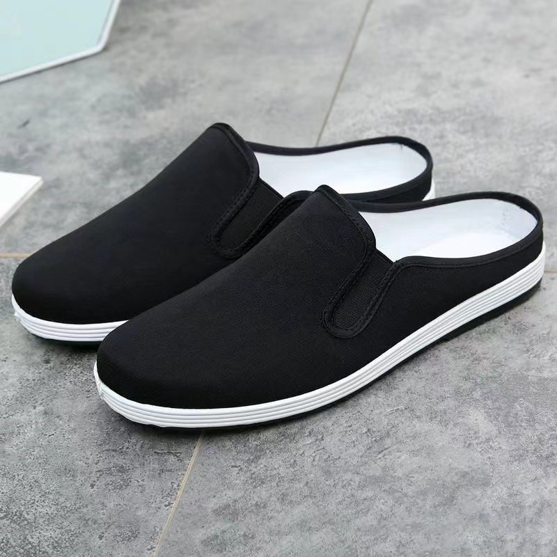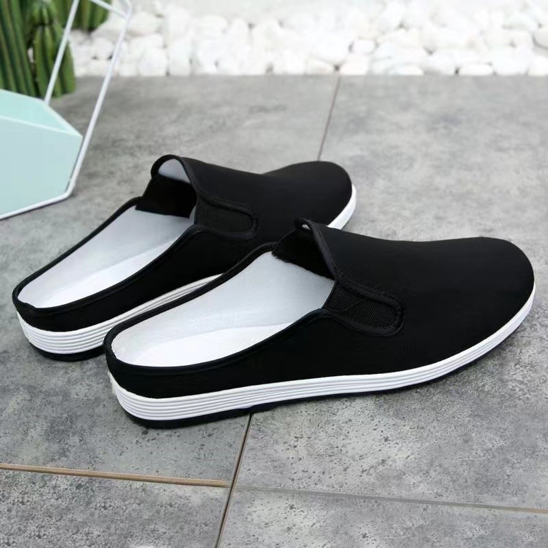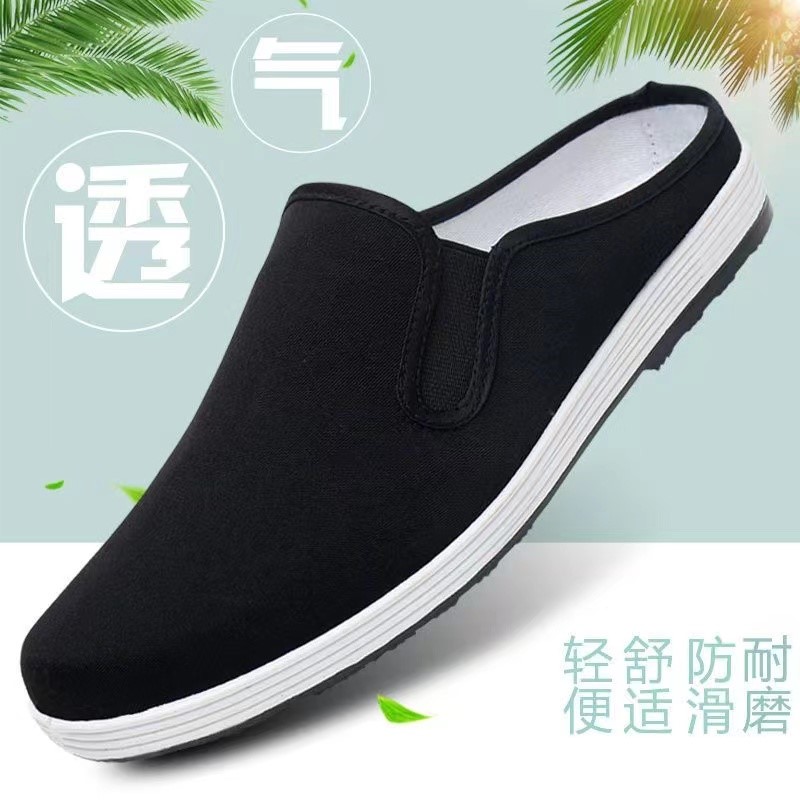 休闲居家一脚蹬 透气千层布底乐福鞋 养脚布鞋 老北京防臭男女黑夏季