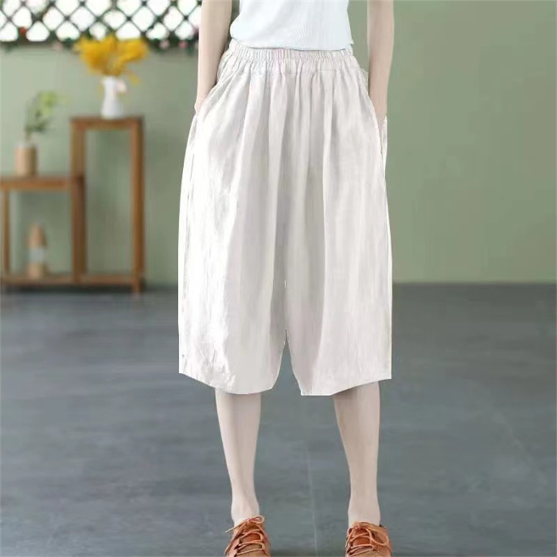女夏2024新款 中年妈妈高腰休闲裤 薄款 哈伦短裤 宽松大码 棉麻五分裤
