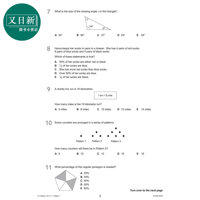 Non English 英国CGP原版 Verbal Papers Practice 11岁测试卷12套 又日新 Reasoning Maths