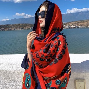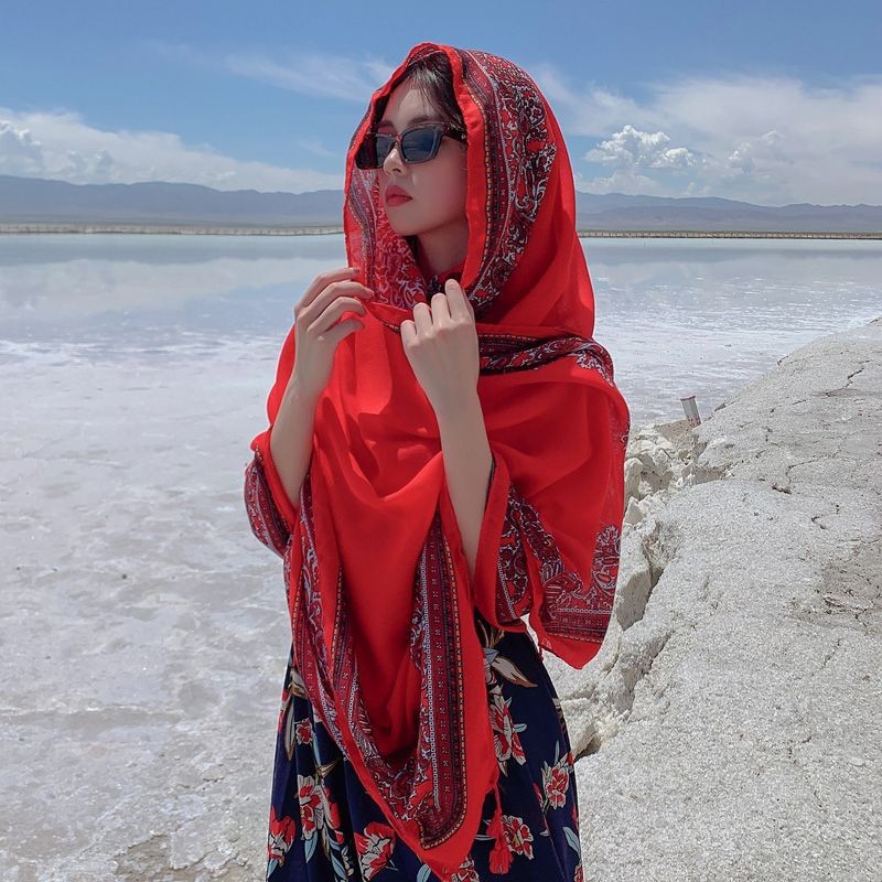 民族风围巾防晒披肩女薄款 云南青海草原旅游穿搭丝巾海边沙滩纱巾